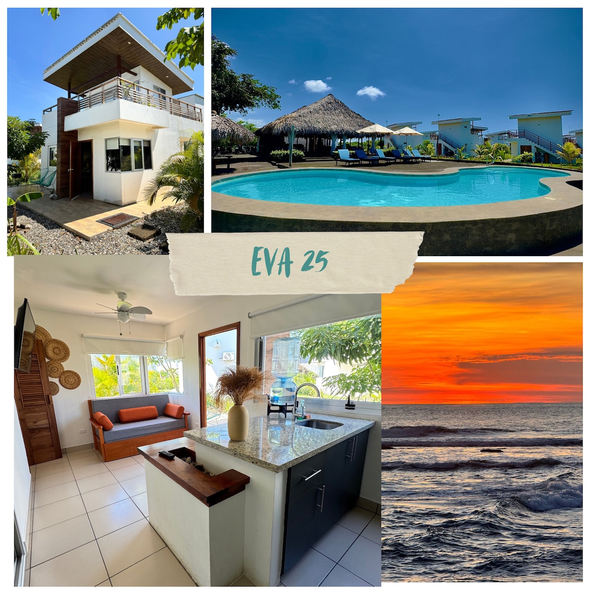 Venha passar as férias e saia com um novo senso de aventura. Explore o Gran Pacifica Resort em nossa propriedade à beira-mar em uma comunidade tranquila e fora da rede. Nossa casa (EVA Home #42) é uma casa ecológica de 2 quartos e 2 banheiros que não compromete o luxo moderno. Este pedaço de paraíso movido a energia solar fica a dois minutos a pé da famosa praia de Asuchillo e a um minuto a pé da piscina e do lounge da comunidade. Nossa casa está localizada a cerca de 1,6 km do restaurante principal. Transporte de aeroporto disponível