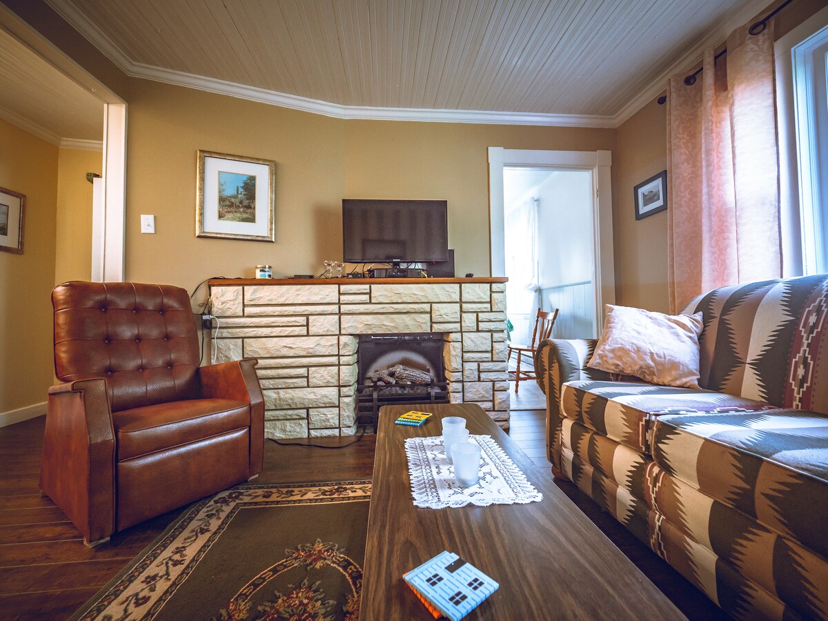 our cottage has a breath taking view. while relaxing on our patio and enjoying the ocean breeze you may have the opportunity to see iceberg or view a whale in season. we are walking distance from a local restaurant,convenience store,walking trail and minutes from Cape Bonavista ,Dungeon and other historic sites. we have 2 bedrooms, fully stocked kitchen with open concept,laundry facilities, and on those chilly nights you can relax and enjoy our fireplace.