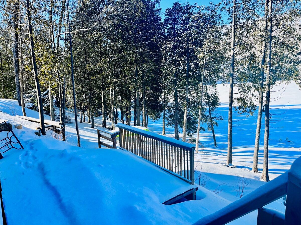 Chalé cercado por árvores, localizado em uma rua tranquila a poucos passos do Lago Chantelle e do Rio Jean Venne. Dois quartos fechados, cozinha totalmente equipada, fogão a lenha (lenha fornecida). Nas proximidades: Spa La Source em Rawdon, percurso Arbraska, montanha de esqui Montcalm, Parque Florestal Ouareau (caminhadas, esqui cross-country, raquetes de neve, escalada). *Wi-Fi e preços acessíveis durante a semana para teletrabalho.