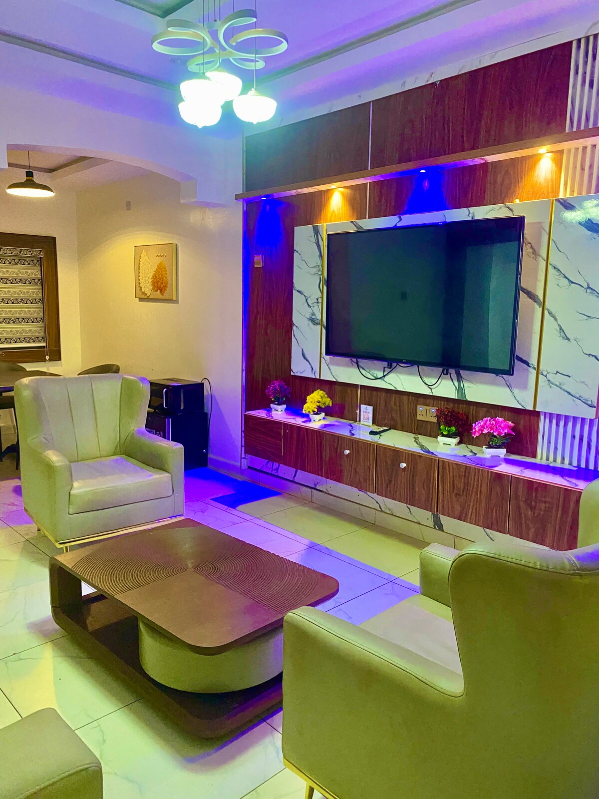 Welcome to Prodigy Luxury Apartment – a stylish retreat where elegance meets comfort. Located in a secure and peaceful neighborhood, our spacious apartment offers 24/7 electricity and security for a worry-free stay. The apartment is fully powered by solar energy, you’ll enjoy uninterrupted light and essentials. Perfect for guests seeking tranquility, convenience, and a touch of luxury. Keep in mind that because of the solar system our AC and heater is not functioning.