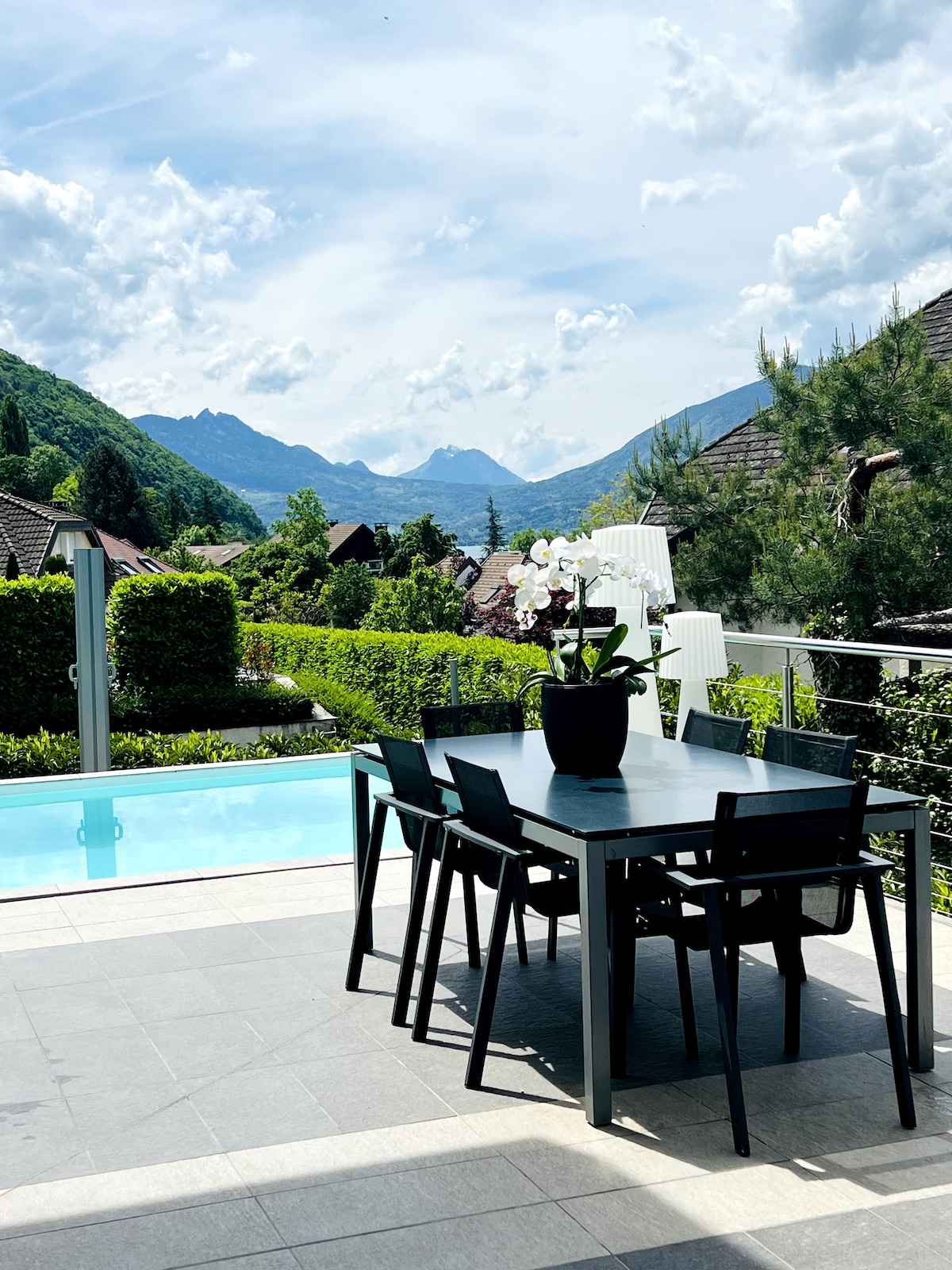 You'll enjoy a spacious 105 m2 apartment in a peaceful setting between lake and mountains, just outside Annecy. The shores of Lake Annecy can be reached in ten minutes, and the ski resorts of La Clusaz and Le Grand Bornand in less than 30 minutes. A beautiful outdoor area with private pool in summer and private spa in winter. Pool open May-Sept (weather permitting) Spa open Oct-Apr All the comforts of home 2 bedrooms / 2 bathrooms