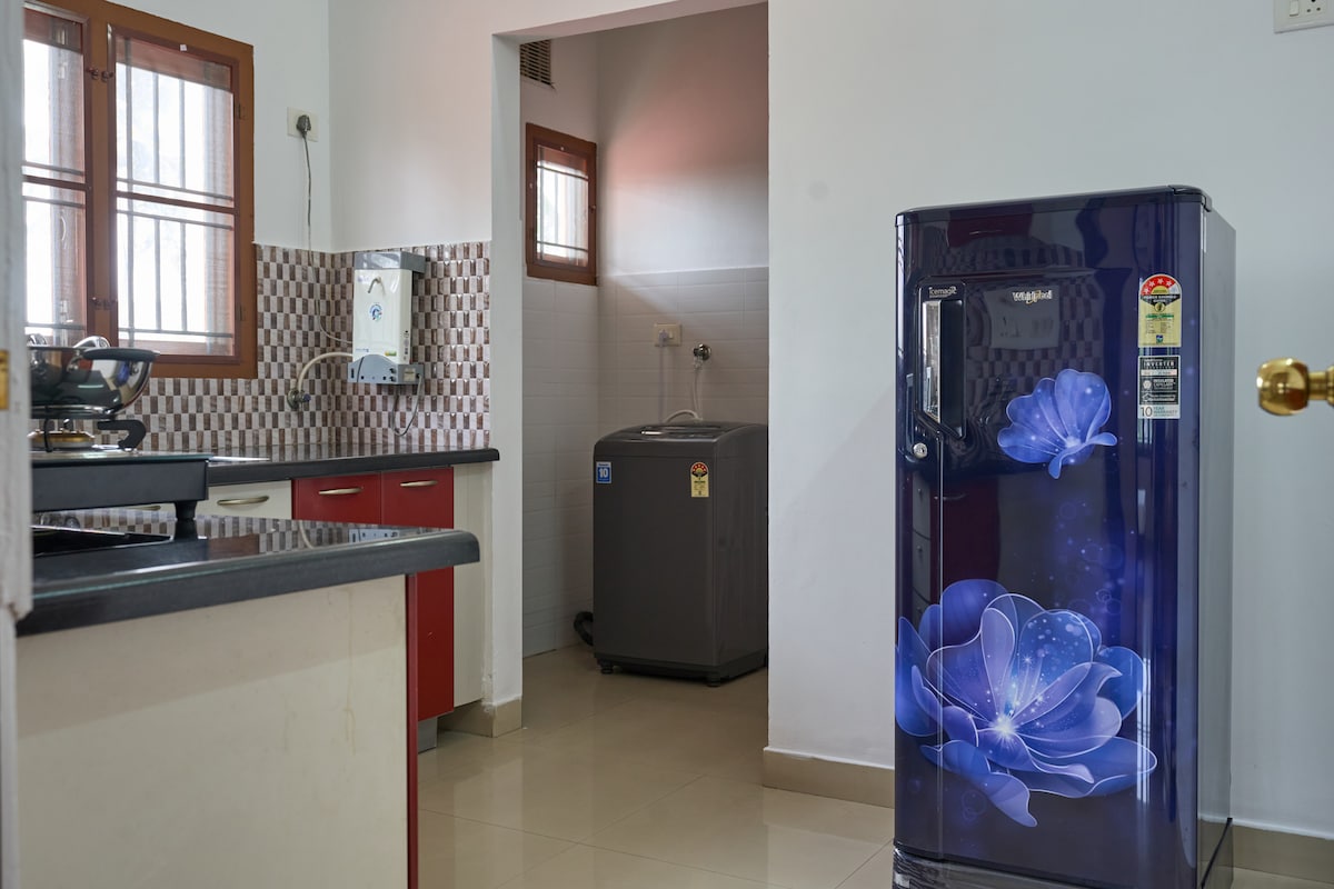 A propriedade dispõe de quartos com ar condicionado e casa de banho, juntamente com uma cozinha separada e uma área de refeições, bem como duas varandas encantadoras, que podem ser particularmente úteis para estadias prolongadas. Está convenientemente localizado perto de comodidades essenciais, como mercearias, caixas multibanco, serviços de câmbio, bancos, restaurantes e uma farmácia, tudo a uma curta distância a pé. Fica apenas a 5 minutos de carro do Hospital Amrita e a 10 minutos de carro do Aster Medicity.