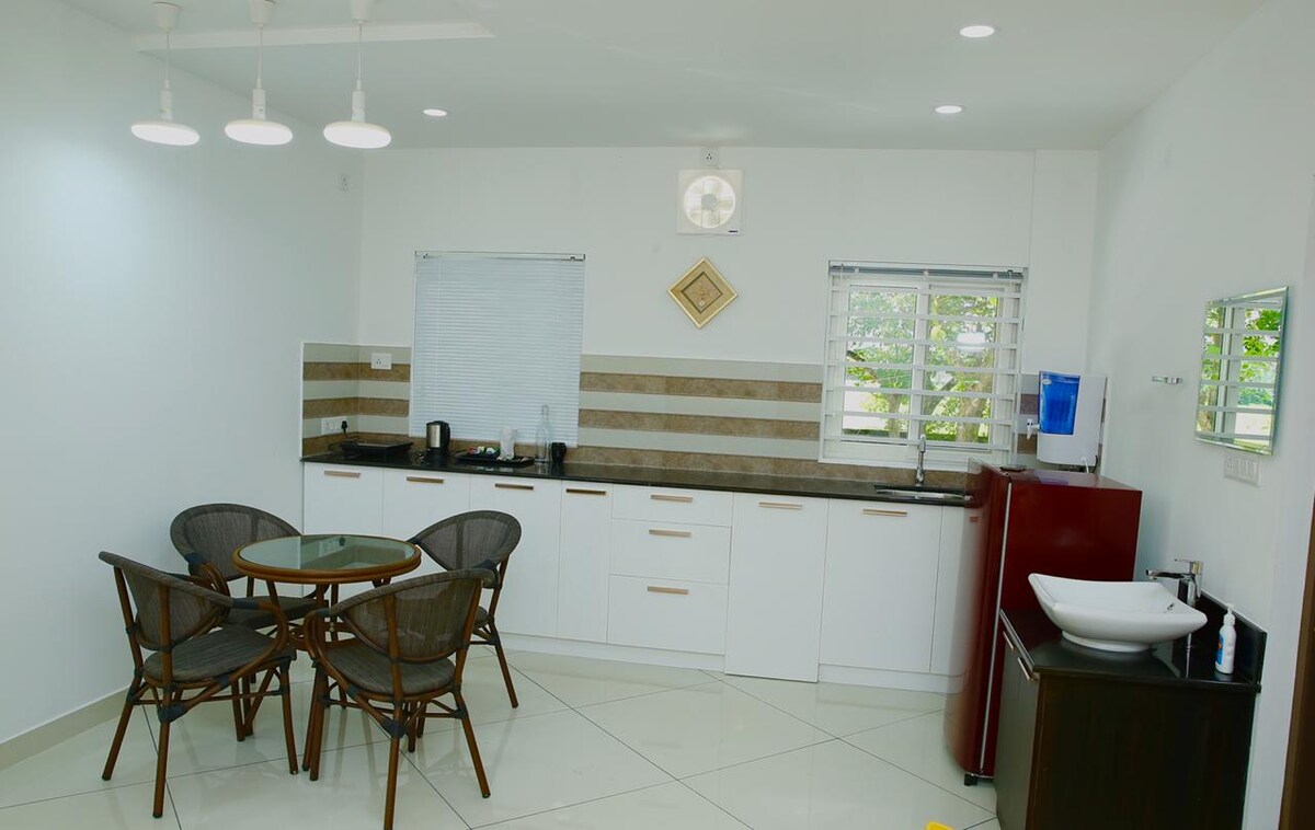 Este apartamento Premium T2 está localizado num complexo de apartamentos acolhedor. Adequado para NRI e acompanhantes de pacientes do Hospital Amrita e do Hospital Aster. Apenas 10 minutos de carro do Lulu e 5 minutos de carro do Hospital Amrita. A estação de metro mais próxima é Edapally: a 2,5 km. Também é possível aceder facilmente a partir de CUSAT e Kalamassery North. Comodidades- • Cozinha totalmente equipada com fogão e chaminé • Máquina de lavar roupa com área de secagem separada • Sala de estar com televisão inteligente • Wi-Fi de alta velocidade gratuito • Cuidador de plantão