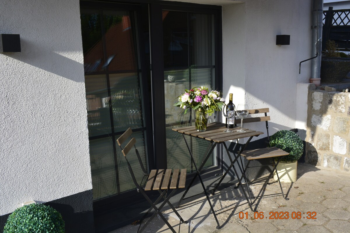 Não fumadores: relaxamento no sudeste de HH! Ofereço um apartamento acolhedor de trabalho ou férias (60 m ², rés-do-chão), incluindo pequeno-almoço (pacote inicial) para estadias curtas. Entrada própria, terraço, jardim, estacionamento no pátio. Localização num beco sem saída tranquilo em Wentorf. Daqui, pode chegar rapidamente a Bergedorf (15'), Hamburg-City (30'), Lauenburg, Ratzeburg ou Lüneburg (40' cada). Boas ligações de transportes públicos através de 2 paragens de autocarro a uma curta distância a pé (5') e o comboio local (S21) em Reinbek (3 km).