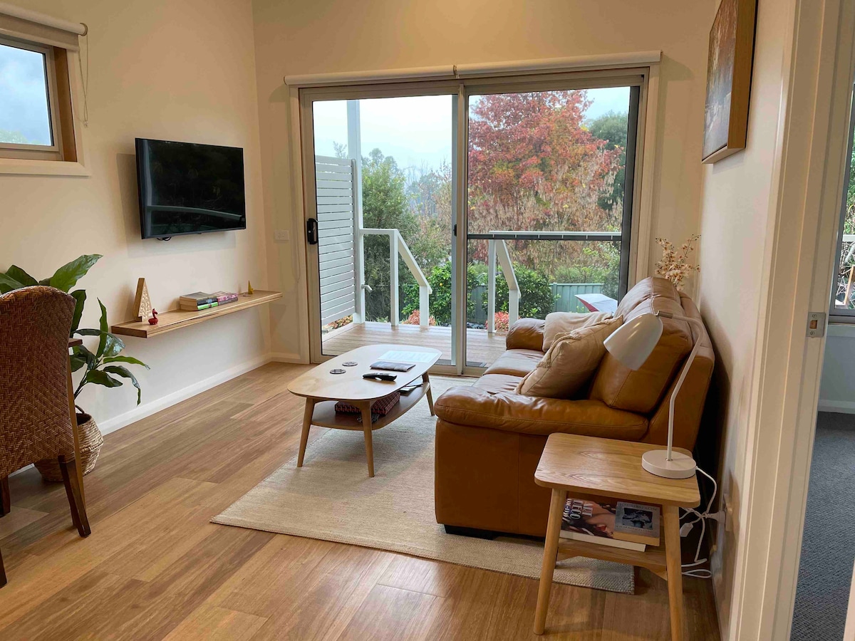 Bem-vindo ao Altura Apartment, um espaço moderno e independente no centro de Bright. Ideal para casais que procuram explorar ou relaxar. O apartamento inclui um quarto espaçoso, casa de banho separada e cozinha completa com área de refeições. A sua posição elevada oferece vistas para o pôr-do-sol sobre Bright e as montanhas. Uma curta e fácil caminhada de cinco minutos pela ponte pedonal do rio Ovens leva às lojas de comida, vinho e boutiques de Bright. Os hóspedes desfrutam de entrada privada, estacionamento e acesso ao pátio.