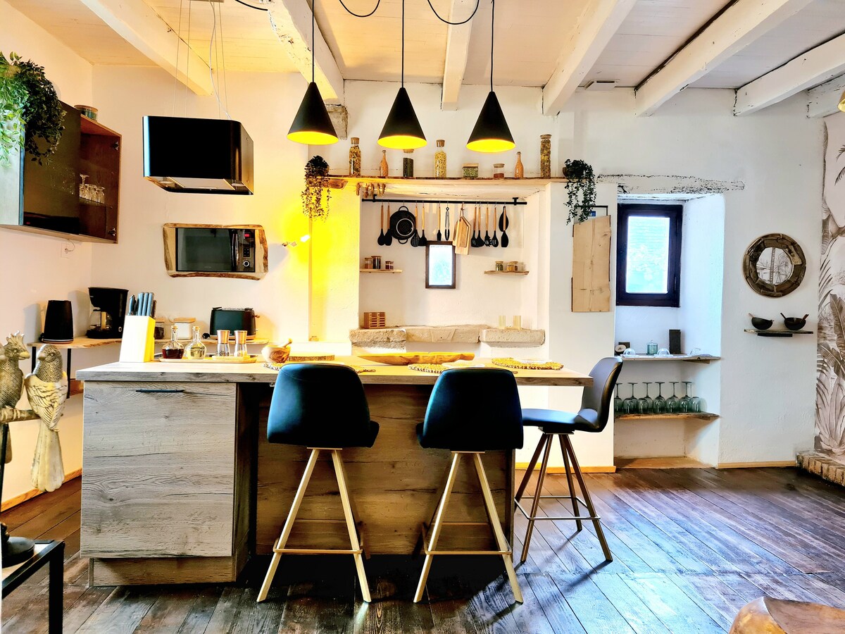 Viva a experiência de uma gariotte totalmente renovada, no coração da natureza, num ambiente acolhedor e aconchegante. Ideal para dois amantes, esta casa seduz pela sua autenticidade, o seu conforto e o seu ambiente bucólico. Desfrute de uma área privada e arborizada, perfeita para relaxar à sombra. Deixe-se embalar pela tranquilidade do lugar. Um mezanino combina o encanto das pedras expostas com a madeira natural. Uma cozinha moderna. Relaxe na banheira de hidromassagem privada.