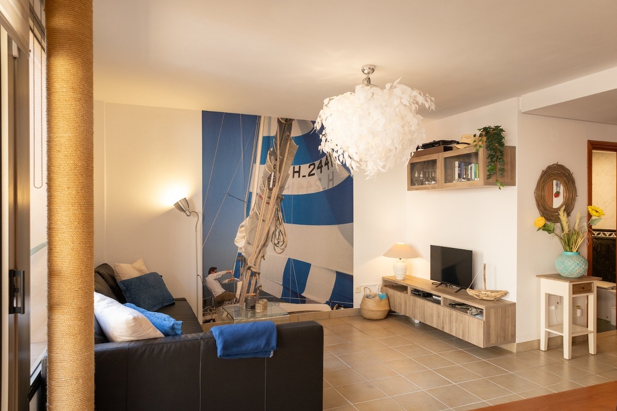 Enjoy breathtaking ocean views from this renovated top-floor apartment in the popular Palm Garden complex, featuring free access to a beautiful swimming pool, on-site restaurant, and elevator access. Perfectly located right in front of the seafront promenade, with shops, bars, and restaurants just downstairs. The beach is just a short stroll away, making it an ideal base for couples or solo travelers.
