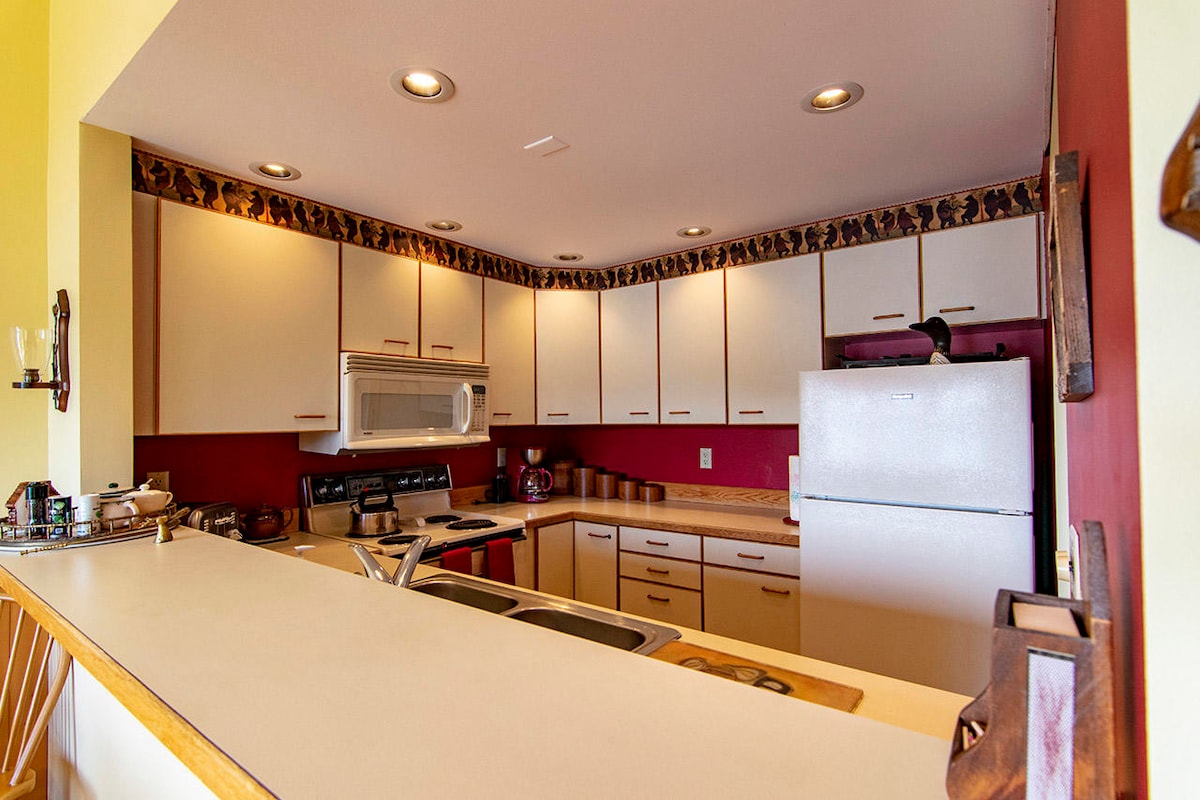 **Os locatários devem ter no mínimo 25 anos para alugar esta propriedade** Condomínio acolhedor e rústico de 1800 pés quadrados - Harbor Lane Condo Complex na margem do Lago Placid! Este apartamento está aninhado entre o Lago Placid e o Lago Mirror e fica a uma curta distância a pé do extremo norte da Main Street. O cinema Lake Placid, restaurantes, lojas, spas e bares estão a 10 minutos a pé. Dê um mergulho no Lago Placid ou lance um caiaque para apreciar a beleza da região ao redor!