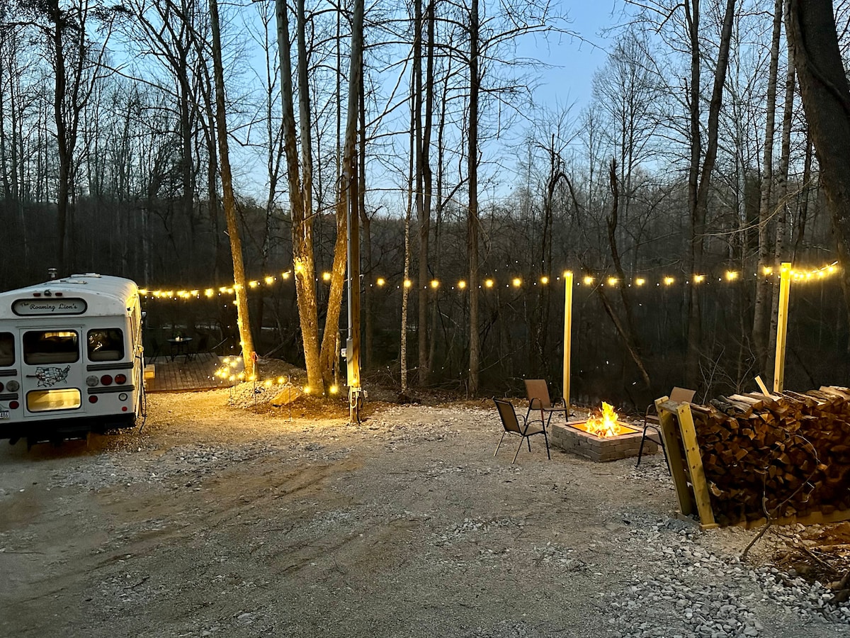 Ônibus escolar transformado em microcasa. Isolado 11,5 acres escondidos nas árvores. Planta bem pensada equipada com cozinha, banheiro e chuveiro. Acomoda 4 hóspedes. 1 cama queen size e 1 beliche. TV de tela plana/DVD player localizado na sala de estar e no quarto principal. Pia de aço inoxidável, bancadas de talho, geladeira/freezer, prateleiras de despensa, armazenamento para roupas e bagagem debaixo de cada cama. Bandejas de jantar de TV, mais de 200DVD 's para escolher. Banheiro de compostagem. Fogueira ao ar livre e churrasqueira