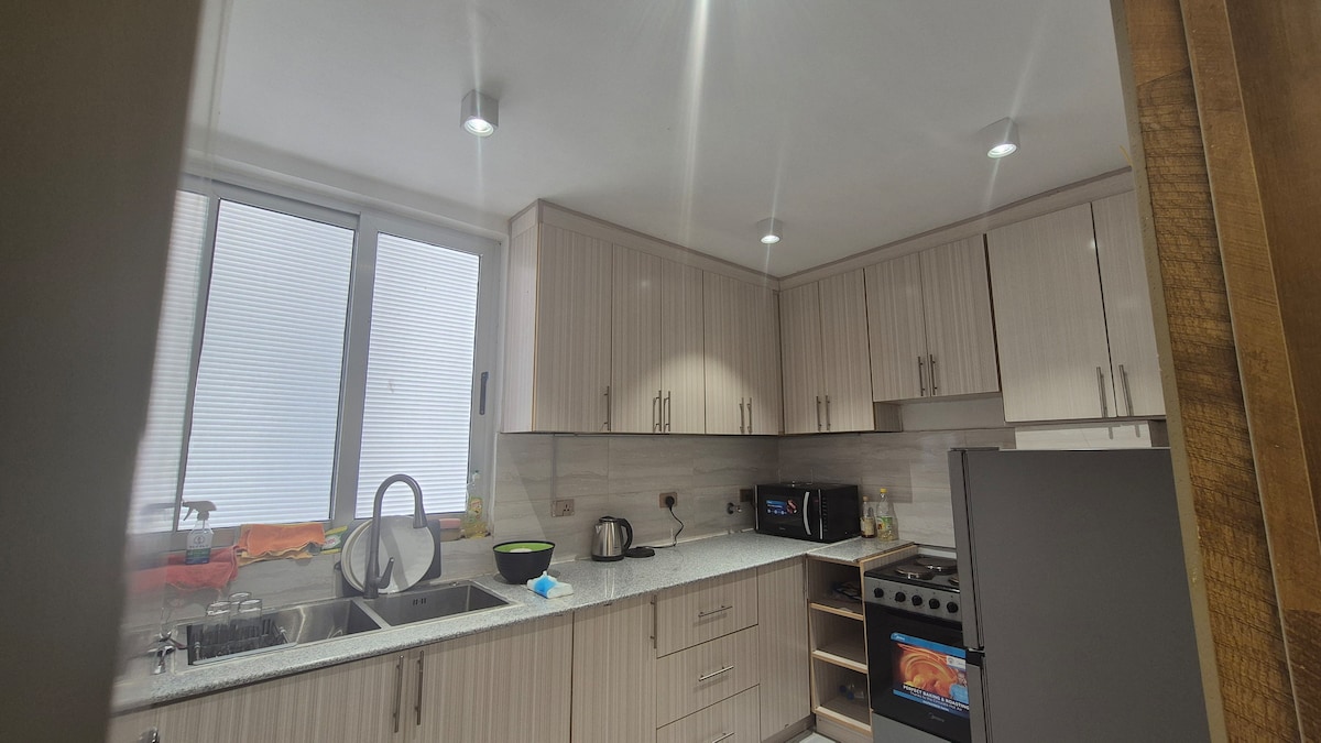Desfrute de um apartamento moderno de 3 quartos com vistas deslumbrantes para a cidade de Addis, janelas do chão ao teto e uma varanda privada. Dispõe de uma área de estar aberta e luminosa, iluminação elegante, cozinha totalmente equipada, acesso Wi-Fi rápido, televisão inteligente e lavandaria. Localizado num bairro tranquilo e sofisticado de Yeka, perfeito para famílias, viajantes de negócios e estadias longas.