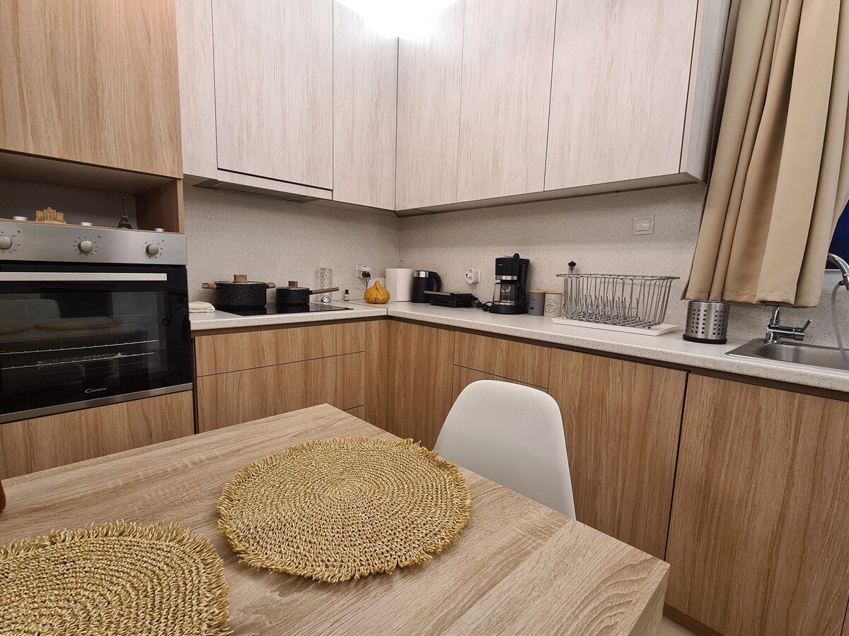 Este apartamento requintado está localizado na rua Valaoritou em Agia Paraskevi, uma das áreas mais bonitas dos subúrbios do sul de Atenas, que tem um monte de áreas verdes, tranquilidade e segurança. Sua posição privilegiada oferece fácil acesso à Via Ática (a apenas 800 m do cruzamento Y3) e um espaço de estacionamento conveniente. Para ir ao centro de Atenas, os visitantes precisarão de aproximadamente 11 minutos, pois a estação de metrô fica a apenas 90 m do apartamento. O bairro tem muitos parques, restaurantes, cafeterias, academia e um grande supermercado nas proximidades. Todo o edifício, o interior do apartamento e a área exterior da varanda são construídos de forma que a casa seja funcional e de bom gosto. Seus equipamentos e móveis são selecionados com foco no estilo moderno e minimalista. O apartamento está organizado para que possa acomodar um casal ou uma família com (2) crianças. Na área principal, há uma sala de estar com um sofá de canto que é facilmente transformado em uma cama, situado em frente à lareira que cria uma atmosfera quente e aconchegante nas noites frias de inverno. A cozinha está totalmente equipada com todos os utensílios de cozinha necessários e tem uma geladeira espaçosa, uma máquina de lavar roupa e um forno elétrico. O quarto tem uma cama tamanho queen. Quando você abre a principal porta francesa da sala de estar, você sai em uma bela varanda com um monte de plantas onde você pode desfrutar de um café, almoço ou jantar com a companhia de amigos