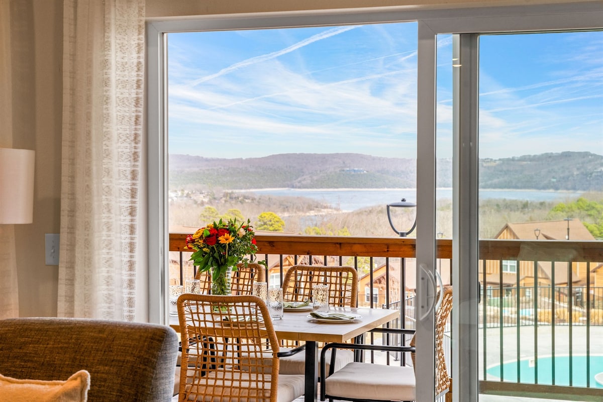 Kick back and relax at Lakeside Boho Bungalow. Stylish and cozy, this two-bedroom, 2 bath condo is sure to meet all your needs and provide a chic boutique hospitality It is right on the water of Table Rock Lake in Kimberling City and overlooks the bridge and pool. We have WiFi, smart TVs in all rooms and the patio, a jacuzzi bath tub, and cozy hotel-like bedding. Come enjoy all the Ozarks has to offer with nearby Silver Dollar City, Dogwood Canyon, World class golf courses, ThunderRidge!