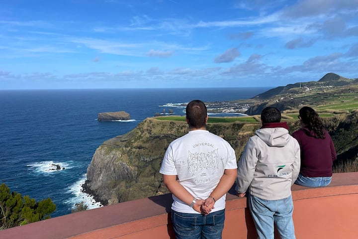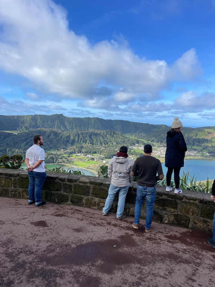 Olá! Sou Miguel, de São Miguel. Nasci e cresci aqui, e me sinto abençoado por compartilhar a magia da minha ilha. Em 2015, comecei a Pure Azores, uma pequena empresa de turismo. Agora temos algumas vans e uma equipe de guias locais, todos tão entusiasmados quanto eu. Nossos passeios são em pequenos grupos, em vans de 9 lugares, com itinerários cuidadosamente projetados para mostrar o melhor de São Miguel.