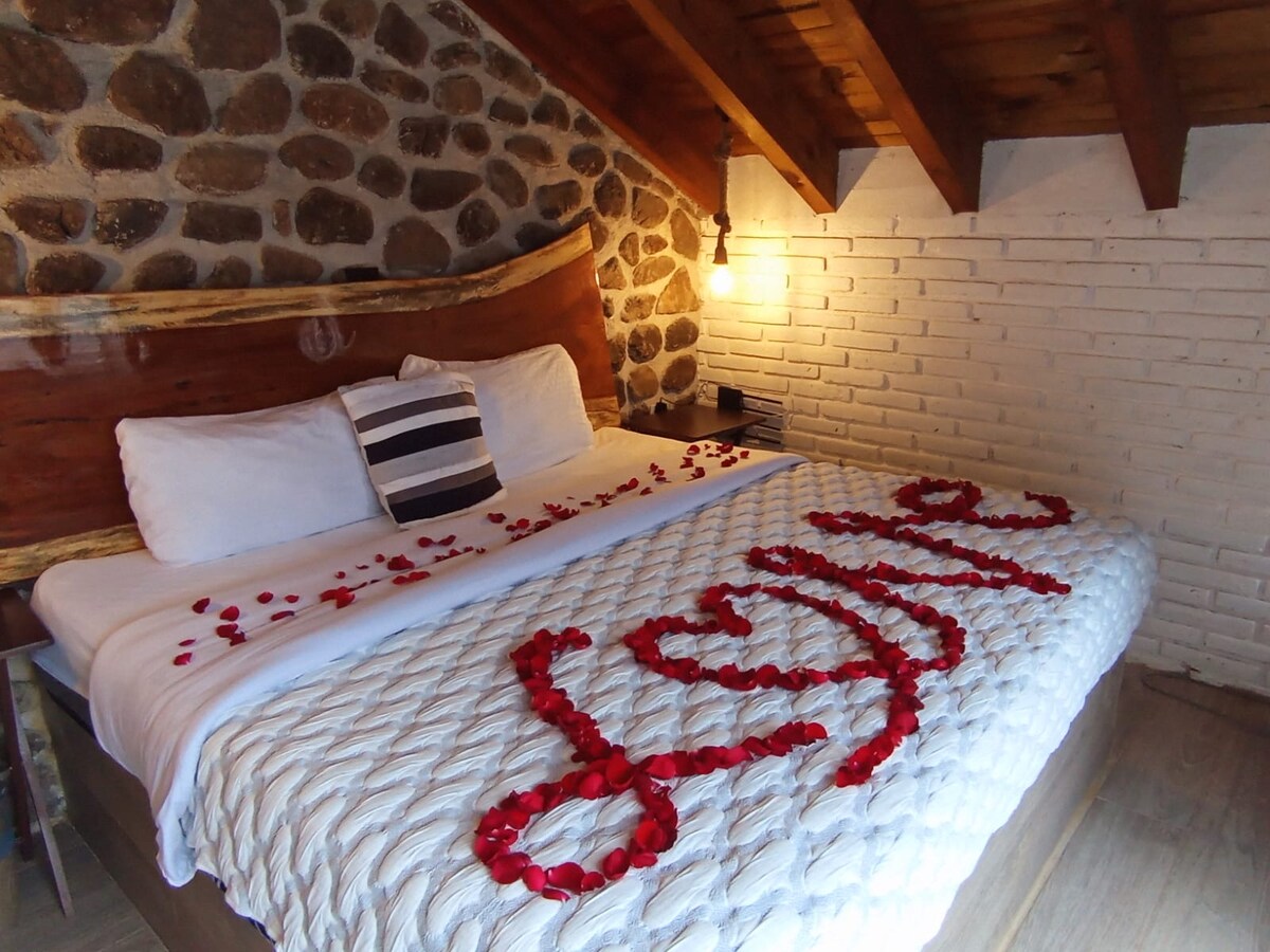 Fuja para a tranquilidade na nossa acolhedora cabana para casais. Localizada em Ezequiel Montes, Querétaro, a nossa cabana é o refúgio perfeito para desligar e desfrutar de um momento especial com o seu parceiro. Rodeado pela natureza e com uma atmosfera acolhedora e romântica, oferece-lhe privacidade, conforto e uma experiência única. Se está à procura de um espaço romântico, tranquilo e rodeado pela natureza, esta cabana é ideal para si. Reserve agora e viva uma experiência inesquecível!