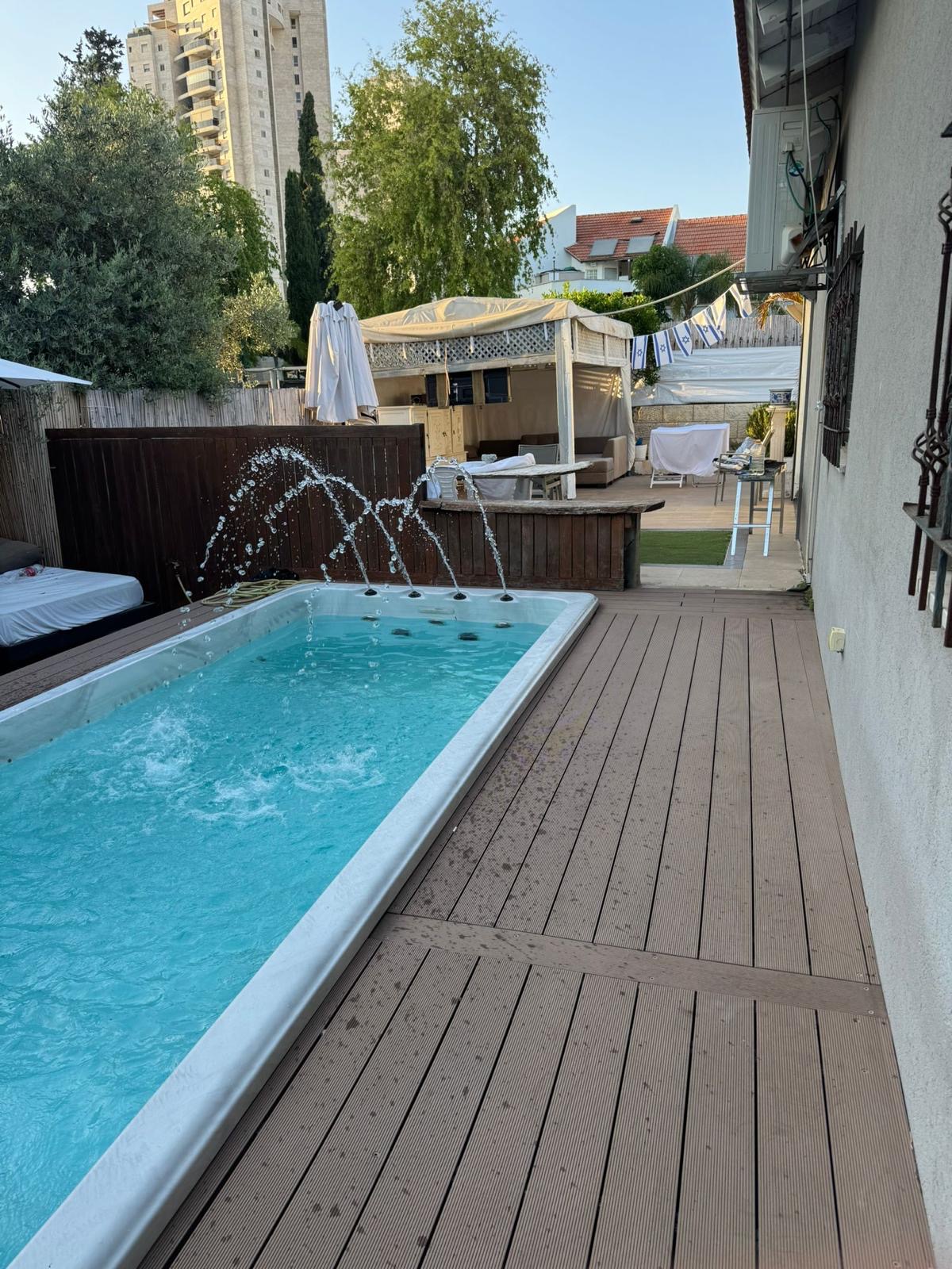 stylish penthouse with gorgeous sunset views! Enjoy a spacious terrace with a swimming pool in the summer (June–October) and a hot tub year-round. Elegant master bedroom with a balcony and bathroom, and a safe room with another bathroom. Located on the 7th floor — bright, airy, and welcoming. Private parking . Just 10 min from Tel Aviv and 20 min to the beach, cafes, and restaurants. In Holon’s best, most central neighborhood — vibrant, lively, and full of charm. — your perfect urban retreat!