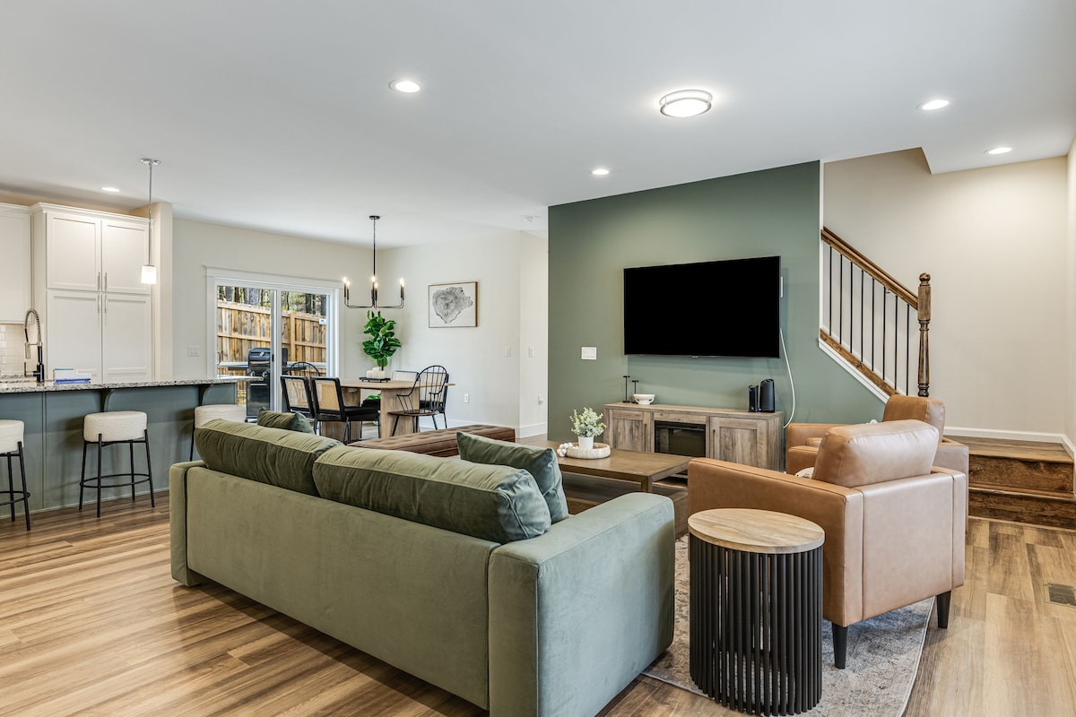 Asheville está a chamá-lo de volta - faça parte do retorno Asheville é aberta e mais vibrante, resiliente e determinada do que nunca — recentemente nomeada como um dos principais destinos para 2025 pelo Forbes Travel Guide e pelo The New York Times. A nossa casa de montanha contemporânea de luxo-romântico está situada em Fairview, NC. Apenas cerca de 14 milhas (aproximadamente 22 minutos) de carro até ao centro de Asheville. Rodeado pelos sons da natureza, completo com banheira de hidromassagem privada ao ar livre + lareira a gás e todos os confortos da vida na montanha.