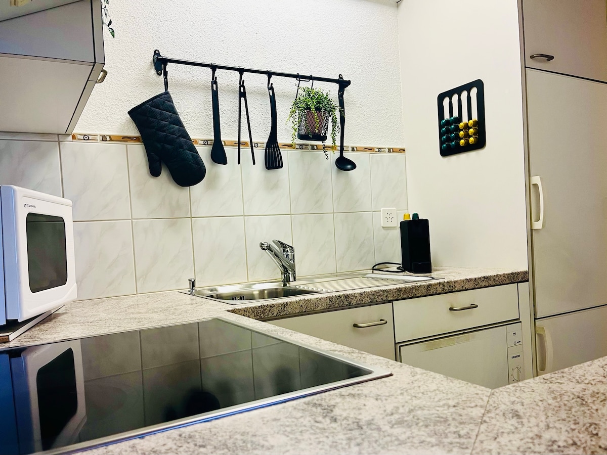 Quarto com terraço espaçoso. Cozinha: cozinha totalmente equipada com máquina de lavar louça, fogão, micro-ondas, forno e cafeteira. As bebidas são fornecidas gratuitamente para você. -Sala de estar: sofá-cama. Wi-Fi gratuito, grande Smart TV - Banheiro: espaçoso banheiro com chuveiro e espelho grande. - Iluminação: iluminação LED ambiente O quarto oferece a combinação perfeita de conforto e relaxamento em seu próprio estilo. Ideal para casais (+ criança), viajantes individuais ou viajantes de negócios