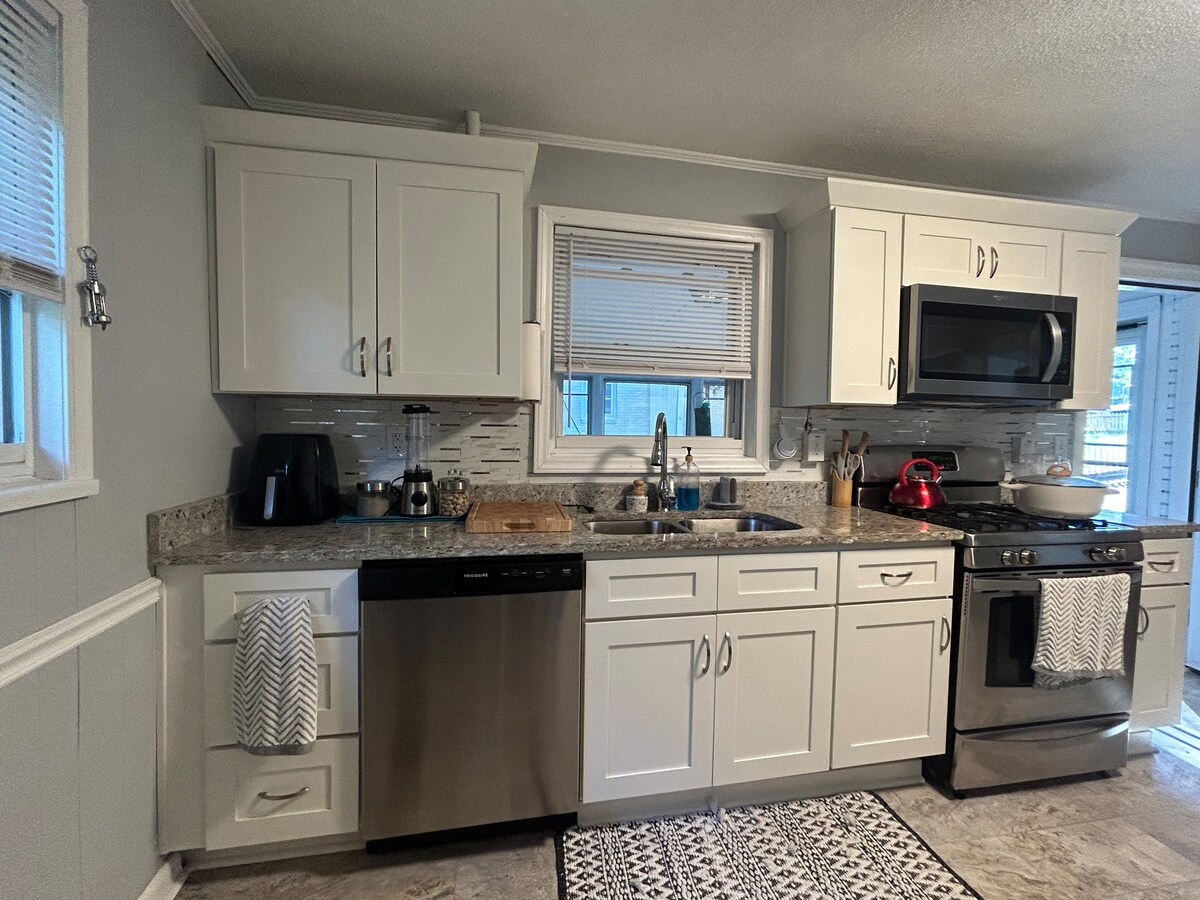 Por favor, NÃO RESERVE para outra pessoa‼ Suíte️ moderna de estilo europeu acima da nossa garagem. É separado, tranquilo e privado. Temos tudo o que você precisa para uma estadia de curta duração (TDY): cama queen size com lençóis, travesseiros, cobertores, toalhas, Keurig, airfryer, Instapot, micro-ondas, fogão de água quente, placa quente de indução, panelas, frigideiras, talheres, pratos essenciais, geladeira/freezer, ferro/tábua de passar, sofá, TV smart, secador de cabelo, WIFI, estacionamento gratuito, acesso a lavadora/secadora, acesso à praia/lago, ambiente sereno. Não fumar!