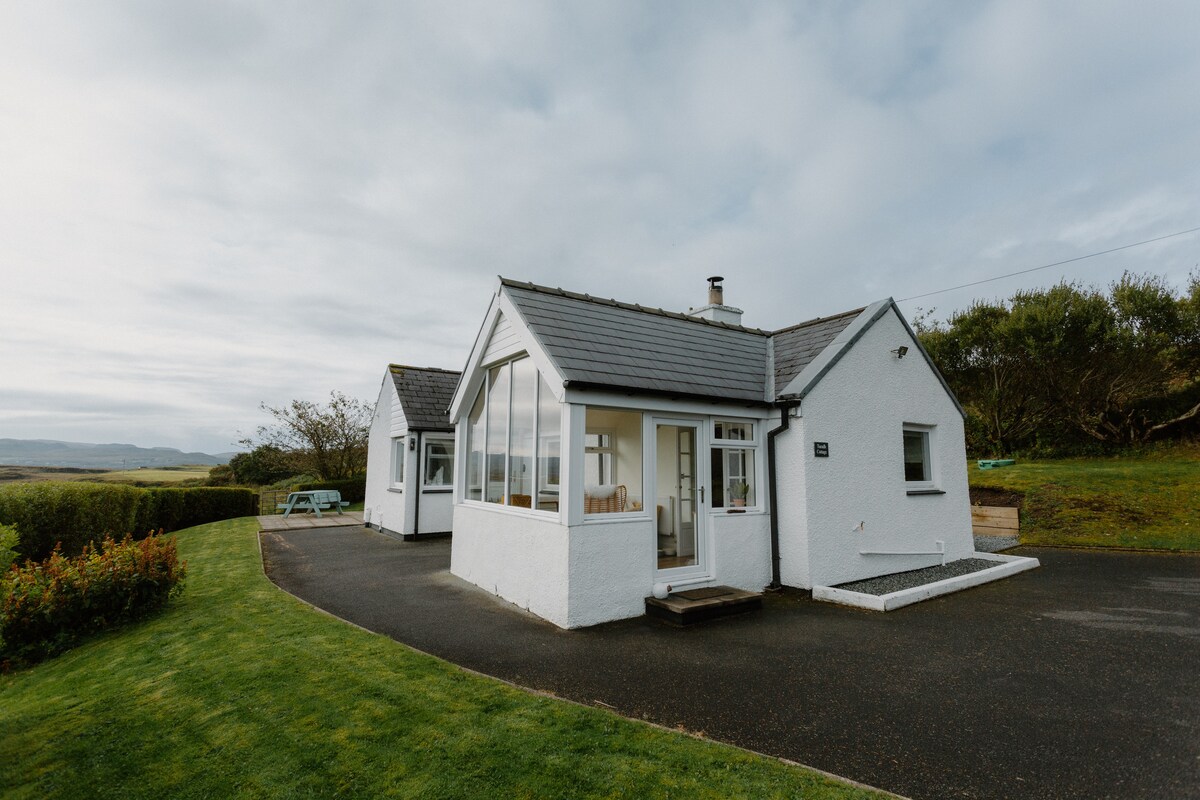 Roskhill Cottage é uma casa de croft do século XIX maravilhosamente restaurada na Ilha de Skye, misturando o charme tradicional das Terras Altas com o luxo moderno. Situado dentro de 3 hectares privados, oferece vistas para o mar e Cuillin, um fogão a lenha acolhedor, cabana de churrasco e banheira de hidromassagem a lenha. Com capacidade para 4 pessoas num quarto king e twin, está decorado com bom gosto e totalmente equipado para uma estadia relaxante. A apenas 1,6 km de Dunvegan e perto dos melhores restaurantes e atrações - perfeito para um retiro tranquilo ou aventura na ilha.