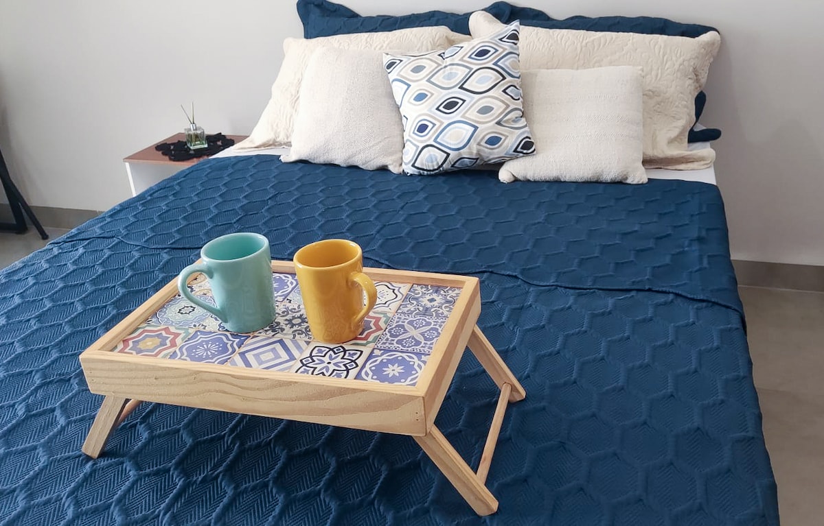 Apto térreo de 50m² com Entrada Privada e Vaga de Garagem. Totalmente equipado para seu conforto, basta trazer as malas e aproveitar. Onde você vai dormir: - Cama de casal (convertível em duas camas de solteiro) - 2 Colchão extra pode ser colocado no quarto ou na sala - Sofá na sala convertível para sofá-cama Ideal para 2 hóspedes, mas pode-se receber até 4 hóspedes que vão usar o colchão extra e o sofá-cama. Localização: - Próximo ao centro e ao Hospital do Amor - padaria na esquina
