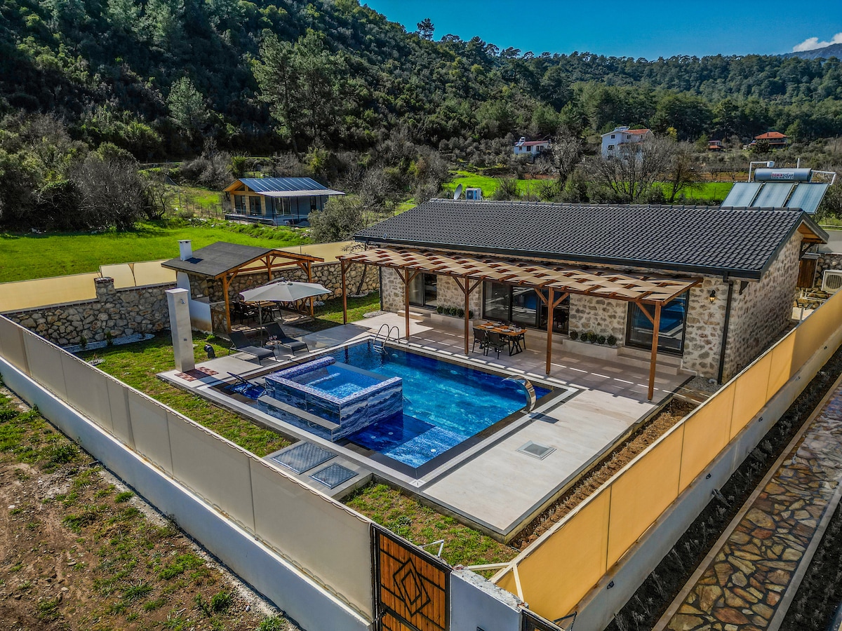 As nossas moradias isoladas Korunaklı 2+1 estão em Fethiye/Kargi, a popular cidade turística e de férias. A nossa moradia de 2 quartos e 2 casas de banho com piscina privada e belo jardim, ar condicionado em todos os quartos, é ideal para os nossos hóspedes que querem passar as suas férias em prazer e paz. (Máximo de 6 pessoas) Longe do barulho da cidade, calmo, tranquilo ao som de árvores frutíferas e pássaros, e as nossas moradias são uma boa opção para quem procura uma alternativa perto do centro e diversão a 15 minutos a qualquer momento.