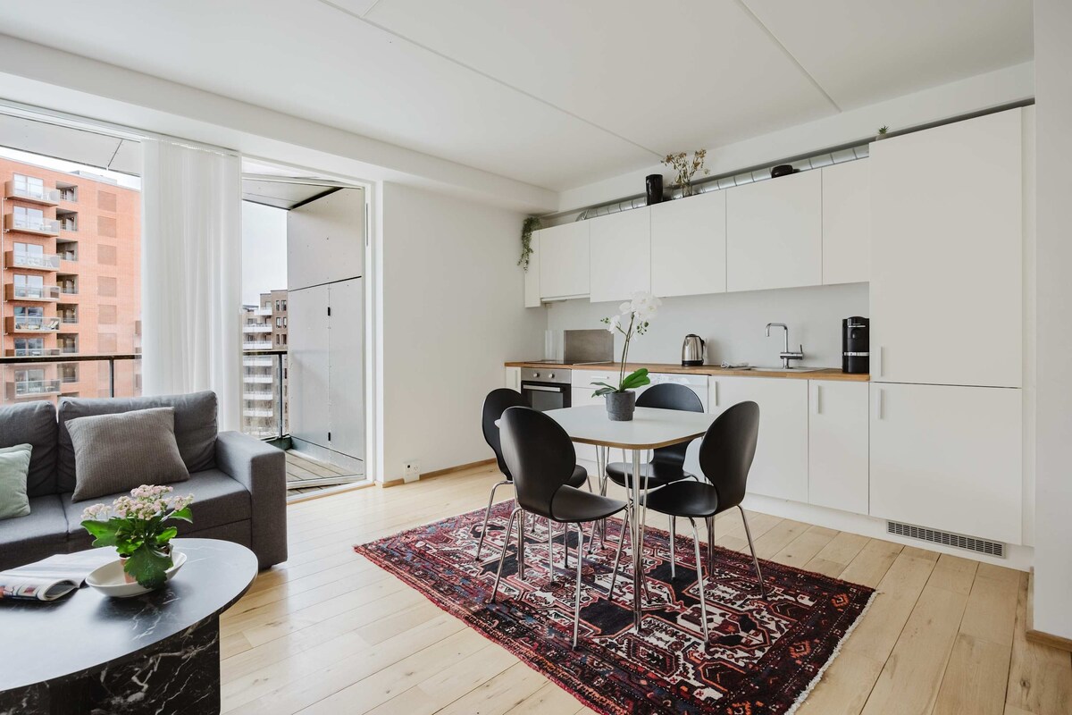 Bem-vindo (a) ao nosso acolhedor e elegante apartamento de 100 m ² em Ørestad, Copenhaga! Perfeito para até 4 hóspedes, possui dois quartos: um com uma cama de 160x200cm e outro com um sofá-cama de 140x200cm. Projetado com charme escandinavo, o apartamento tem uma sala de estar iluminada, cozinha totalmente equipada, casa de banho moderna. LGBT+ amigável, fica perto do metro Bella Center (600 m), Byparken (50m), Fields (500m) , Royal Arena (1,5 km) e apenas 2 paragens de metro para o aeroporto - a sua escapadela ideal em Copenhaga!