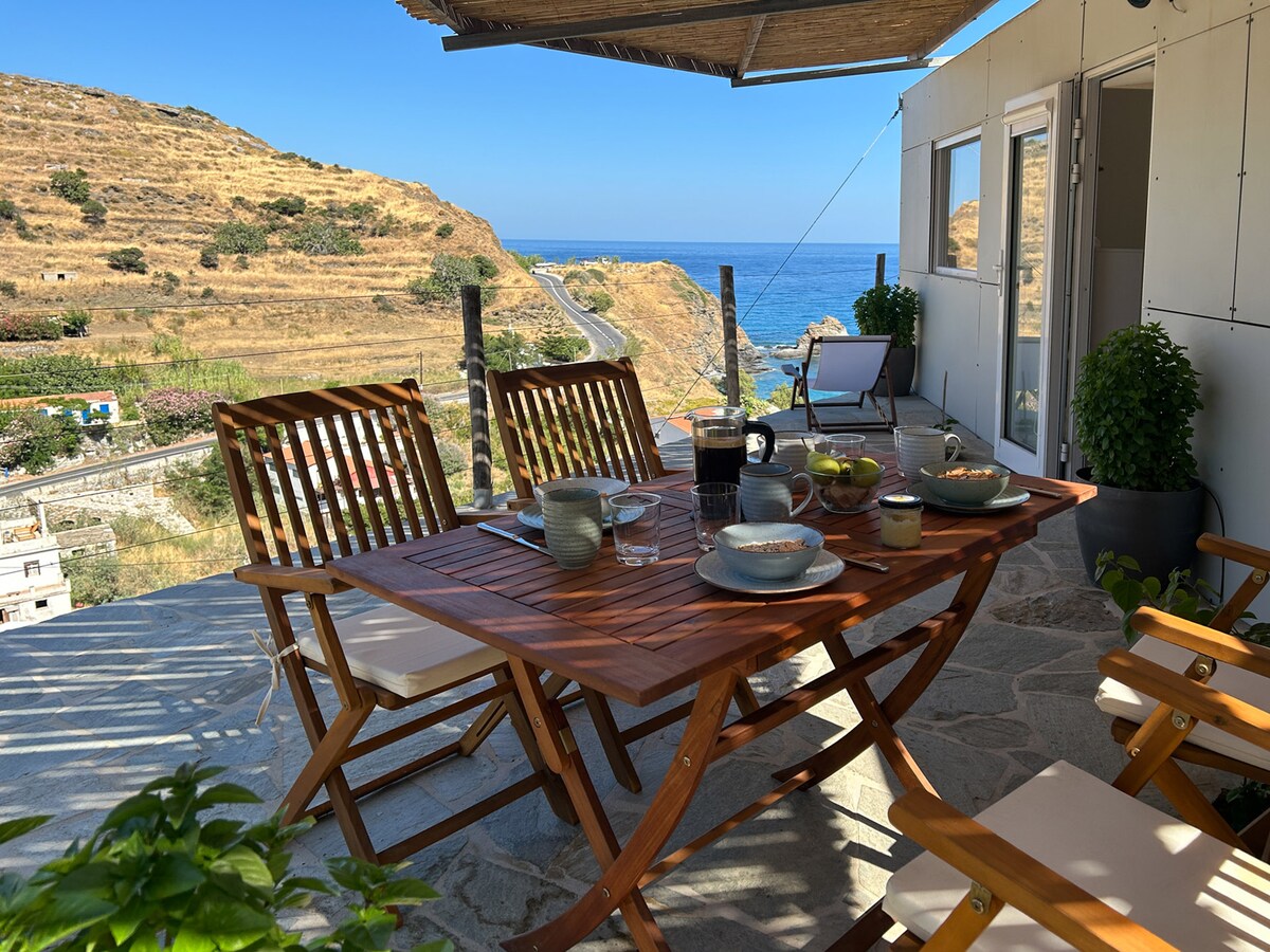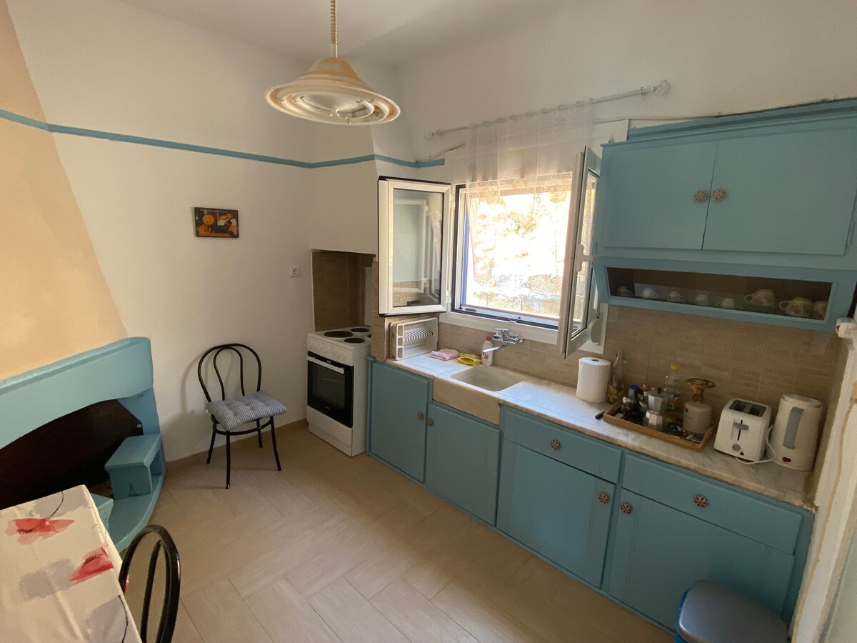 Situated at the center of Magganitis the most beautiful village of Ikaria.Ikaria is a bluezone area and also Covid free area.From my place you have an amazing view of Agean sea.The place is close to the beach Firodi.Also close to the grocery.50 m.from the tavern"Φεροη"and 1 kl from the famous beach Seychelles. Τhe apartment includes two bedrooms,two bathrooms(the one of the bedroom has ensuite bathroom)kitchen, living room,courtyard,and free parking space.