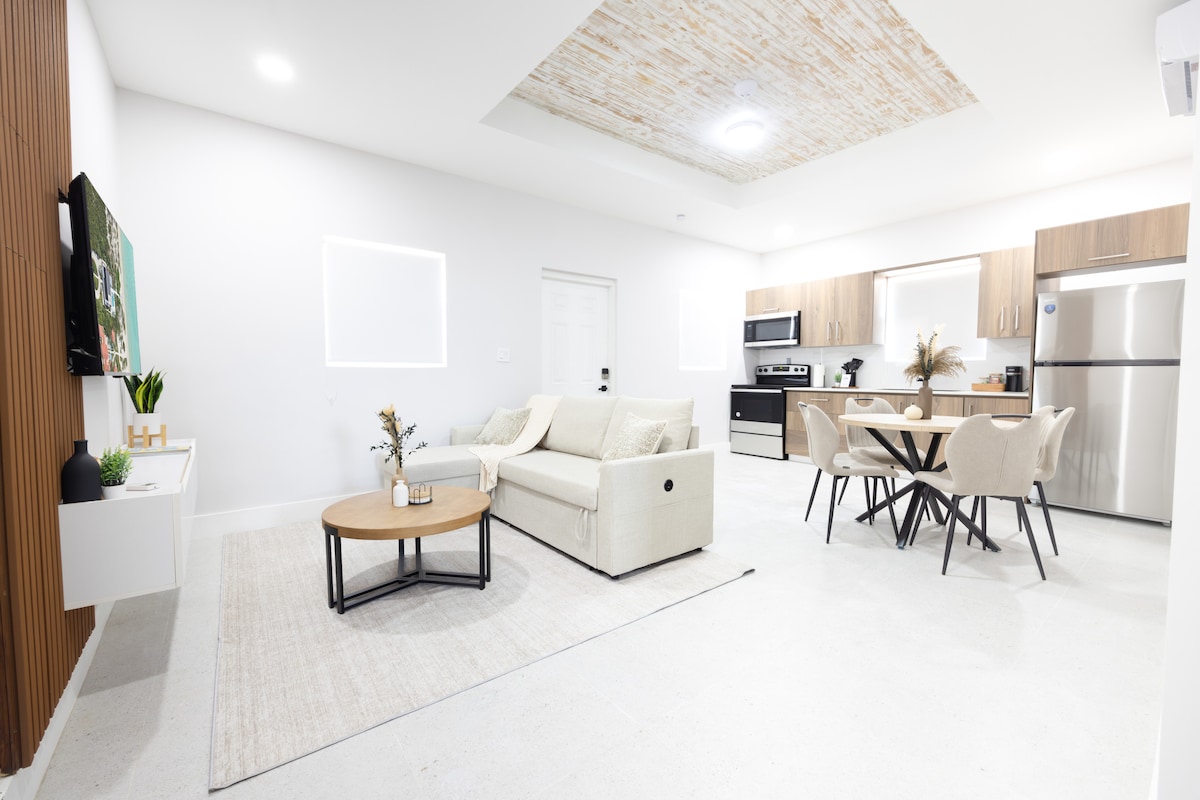 Arrendamentos totalmente mobilados incluem uma cozinha e as comodidades de que precisa para viver confortavelmente durante um mês ou mais. É a alternativa perfeita a uma sublocação.