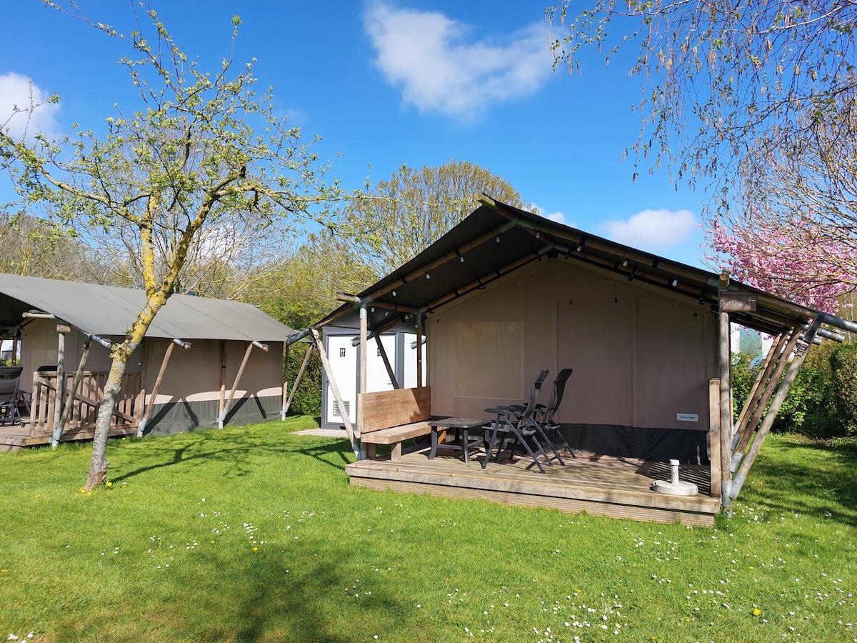 safaritent landelijk uitzicht eigen sanitair