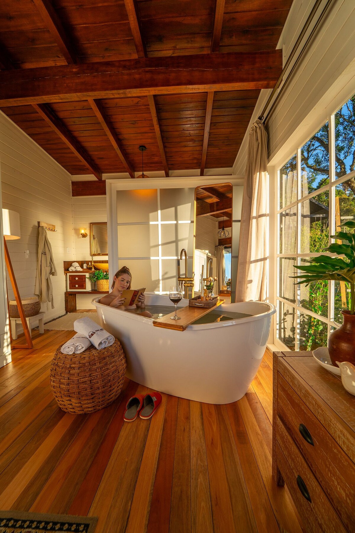 Desconecte-se da rotina em uma experiência única neste chalé aconchegante cercado pela natureza. Ideal para famílias, casais ou grupos de amigos, o espaço acomoda confortavelmente até 6 pessoas e oferece todo o conforto necessário para momentos de descanso e conexão. A banheira de hidromassagem é perfeita para relaxar curtindo o visual da mata. O chalé conta com ambientes amplos, incluindo cozinha completa, sala com lareira, varanda com vista para a paisagem e quartos confortáveis.