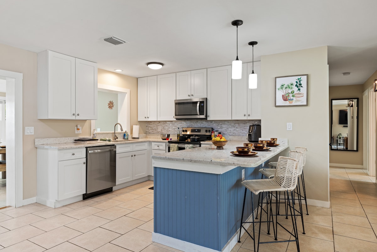 Casa completamente remodelada com decoração moderna. Esta acomodação fica perto de tudo, sem a atmosfera movimentada de um destino turístico lotado. Do outro lado da rua da praia, você pode ouvir as ondas. Aproveite o ritmo lento de Melbourne Beach com restaurantes locais e mercearias. Várias áreas de praia públicas a poucos quilômetros e a pesca de classe mundial fica a apenas 14 quilômetros de distância na Sebastian Inlet.
