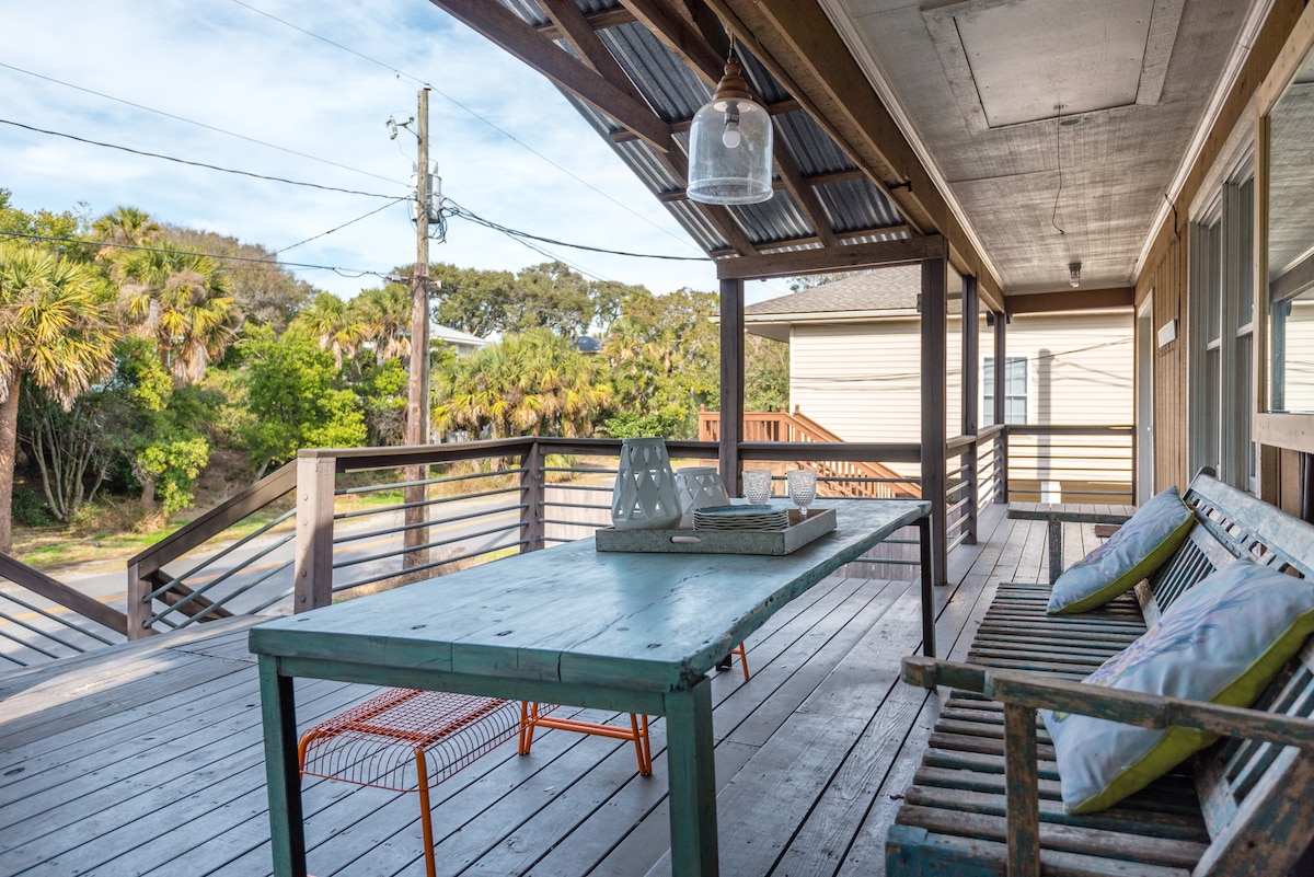 Bem-vindo ao seu paraíso Folly! Este bungalow de praia rústico dos anos 40 foi atualizado com eletrodomésticos modernos, casa de banho de luxo nova, arte, pranchas de surf, televisão inteligente 4K de 60 polegadas pronta para as suas subscrições, aparelhagem com bluetooth e um enorme chuveiro ao ar livre. Os hóspedes adoram a privacidade de ter uma propriedade isolada em tamanho real, com ótimos espaços ao ar livre, estacionamento e a uma curta caminhada da praia, bares e restaurantes, pela mesma tarifa que um condomínio barulhento. Um retiro para hóspedes que querem uma verdadeira vibe de loucura old school.