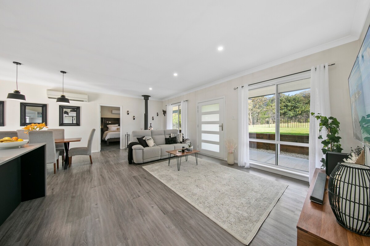 O "Barefoot at Broke" oferece-lhe uma escapadinha perfeita no Hunter Valley numa mistura única de casa de campo moderna e pode ser alugado como 2 ou 3 quartos, uma enorme sala de estar em plano aberto, refeições e cozinha gourmet e mobilado com todos os luxos e toques modernos para mimar você e o seu amigo peludo. Situado em 23 hectares, oferece aos hóspedes algumas vistas espetaculares da lagoa, cordilheiras e vinhedos vizinhos para relaxar completamente e rejuvenescer enquanto explora o tranquilo Hunter Valley