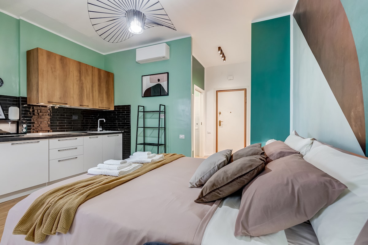 Relax in this peaceful setting in a central position in the ancient village of Formello. Completely renovated maintaining its typical character, it was the atelier of two important 20th century artists who you can discover through the reproductions of his works and the story of his life which is told on the walls and spaces of this welcoming environment. Equipped with many comforts including air conditioning, washing machine, a small balcony, large free parking nearby.