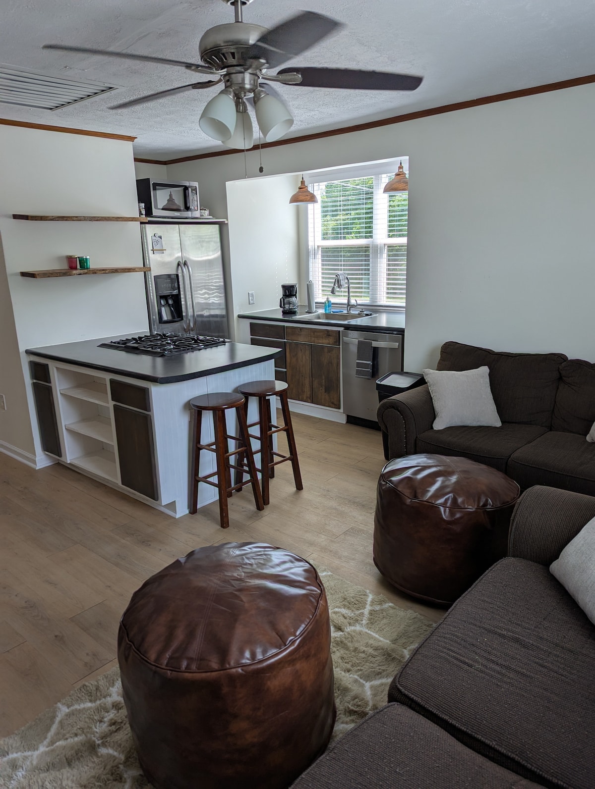 Desfrute de uma experiência elegante com alguns recursos novos e mais antigos que o Rustic Charm tem a oferecer neste lugar com excelente localização. O Rustic Charm certamente tornará qualquer estadia divertida, confortável e aconchegante. 1 quarto com uma cama king size, um armário e um cofre para guardar seus pertences pessoais. A sala de estar oferece uma cadeira de rede interna (limite de peso de 350 lb) na qual você pode relaxar após um longo dia. 2 TVs inteligentes com Internet de alta velocidade e serviços de streaming disponíveis. Lareira elétrica durante todo o ano no quarto.