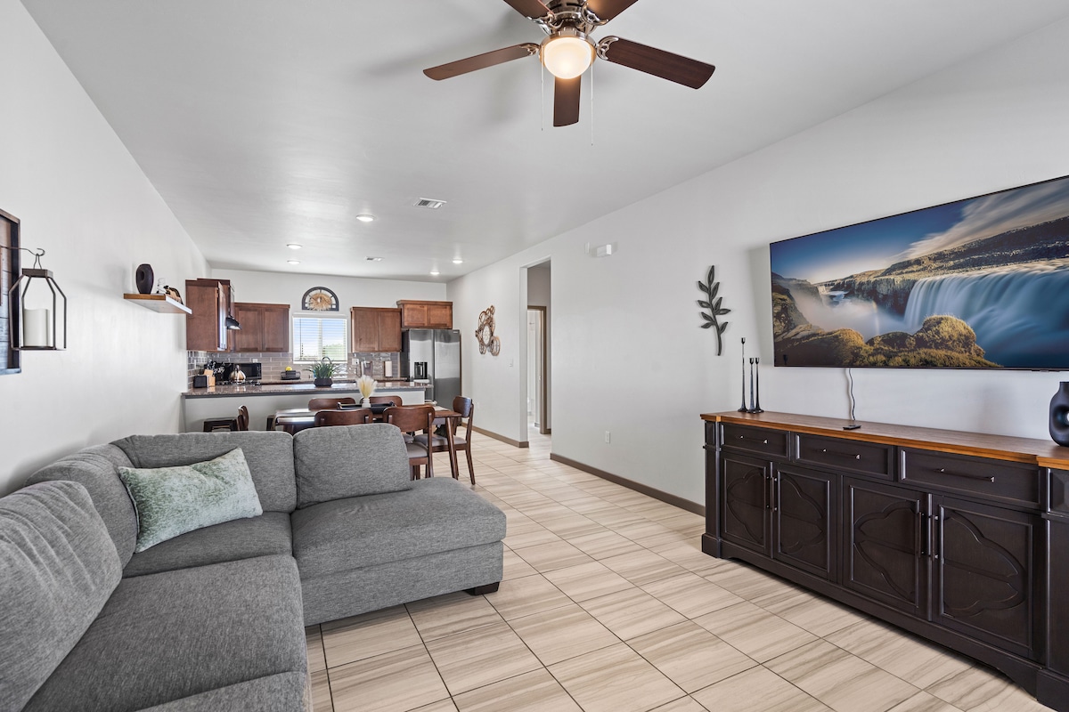 Apartamento de▪️ 2 quartos e 1 casa de banho com camas KING 🔹Refrigeração ▪️Cozinha completa 🔹Lavandaria sistema de▪️ segurança para sua tranquilidade 🔹 smart tvs para poder entrar no seu streaming ▪️WI-FI Entrada de garagem🔹 pessoal para 2 carros ▪️1 min de carro até à I-54 🔹5 min de carro até à I-10 ▪️5 min de carro até FORT BLISS CASSIDY GATE 🔹3 minutos de carro do WALMART. 🔹10 minutos de carro do AEROPORTO 🔹A CHEGADA é DEPOIS das 16h00. ▪️PARTIDA ANTES das 10h. - Informe-se sobre animais de estimação por uma taxa extra -Desculpe! Não prestamos serviço de correio