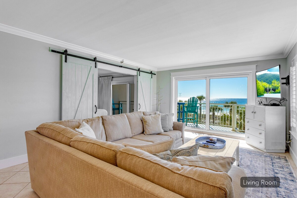 This private 1BR/1 1/2B Beach Retreat is on Okaloosa Island. It is the entire 2nd floor of the house & has its own entry. The property is Directly N of Beach Access 7. 16’ ceilings. LR w/65” & MBR 4K 50” SmartTVs, WiFi, Netflix, DVDs, Full Kitchen, Bar area, Dining Room, Library wall, QN Pull-out w/pvcy screen, gas grill, fenced yard, fire pit w/1000 sq ft deck & garden boxes. Approved pets ONLYw/NRFD. <2mi. groceries, fresh seafood, nightlife, ConventionCtr, jog path & public transit.