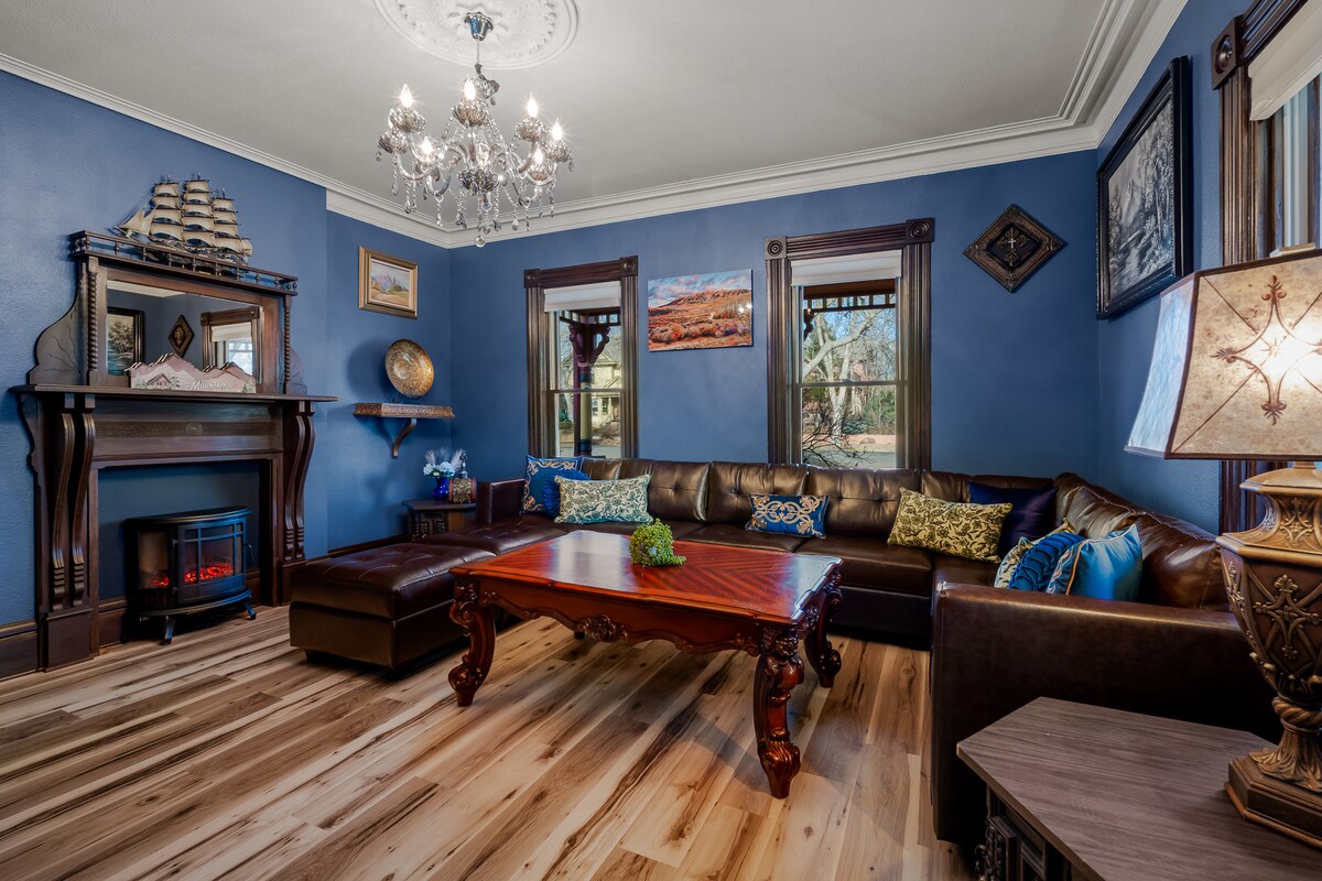 ★Myth & Magic Manor é um palácio vitoriano caprichoso: decoração inspirada em Hogwarts, dragões + contos de fadas ★Antiga Cidade de CO: Jantar, Compras, perto do Jardim dos Deuses + centro da cidade ★Spa: sauna de infravermelhos, música + luzes de ambiente ★Equipamento de ginástica: banco de treino, pesos, faixas + tapete de ioga ★Alpendre envolvente: lareira, grelha, jogos de jardim + cadeiras de balanço ★Sala de estar: Smart TV de 70 polegadas, jogos de tabuleiro e sofás ★Cozinha equipada: máquina de waffles, liquidificador e muito mais! ★Famílias bem-vindas! Cadeira alta, PackNplay, portão de bebé + mais!