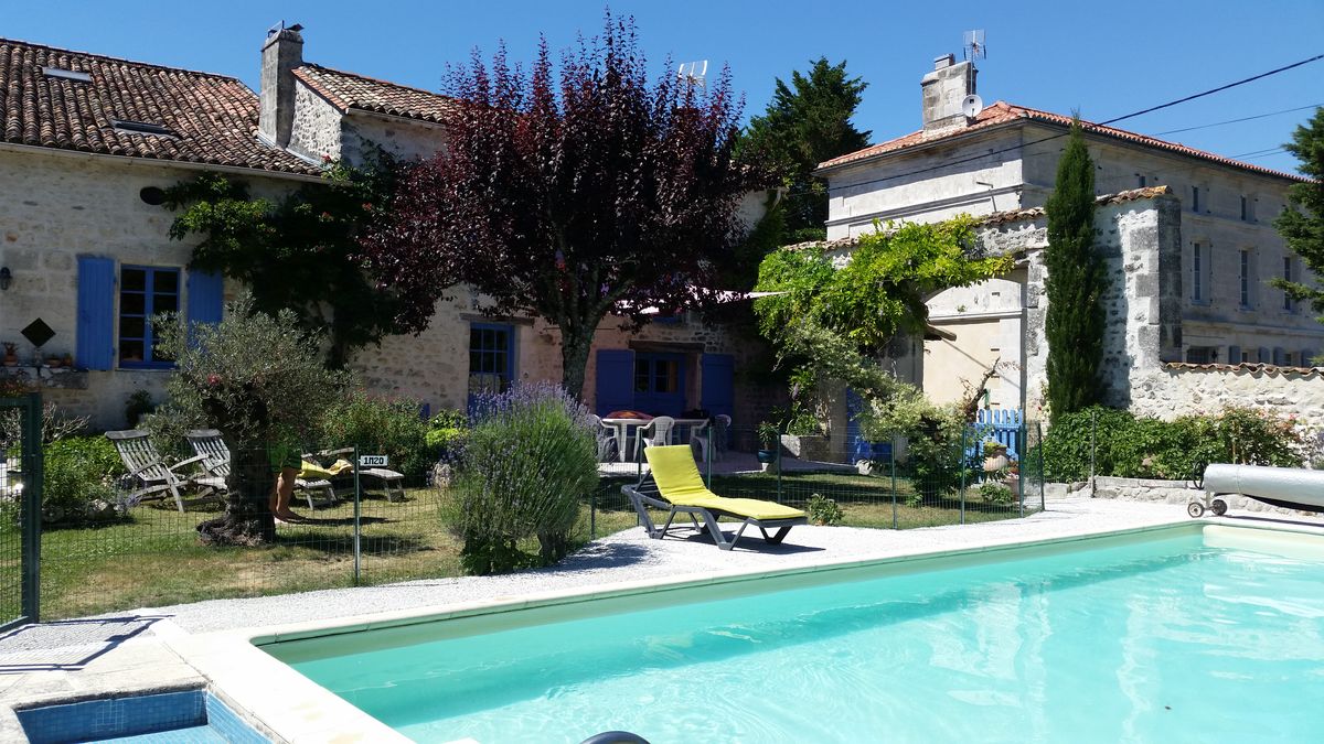 Casa de Charente com capacidade para até 7 pessoas. Antiga fazenda com um grande pátio fechado com árvores. No meio de campos e bosques, com a possibilidade de fazer caminhadas pela propriedade. 3 quartos, 1 cozinha/sala de jantar, 1 sala de estar, 1 banheiro e 1 toalete