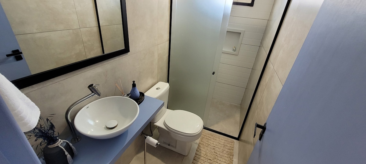 Apê novo, garagem, até 3 pessoas, ar cond e wifi
