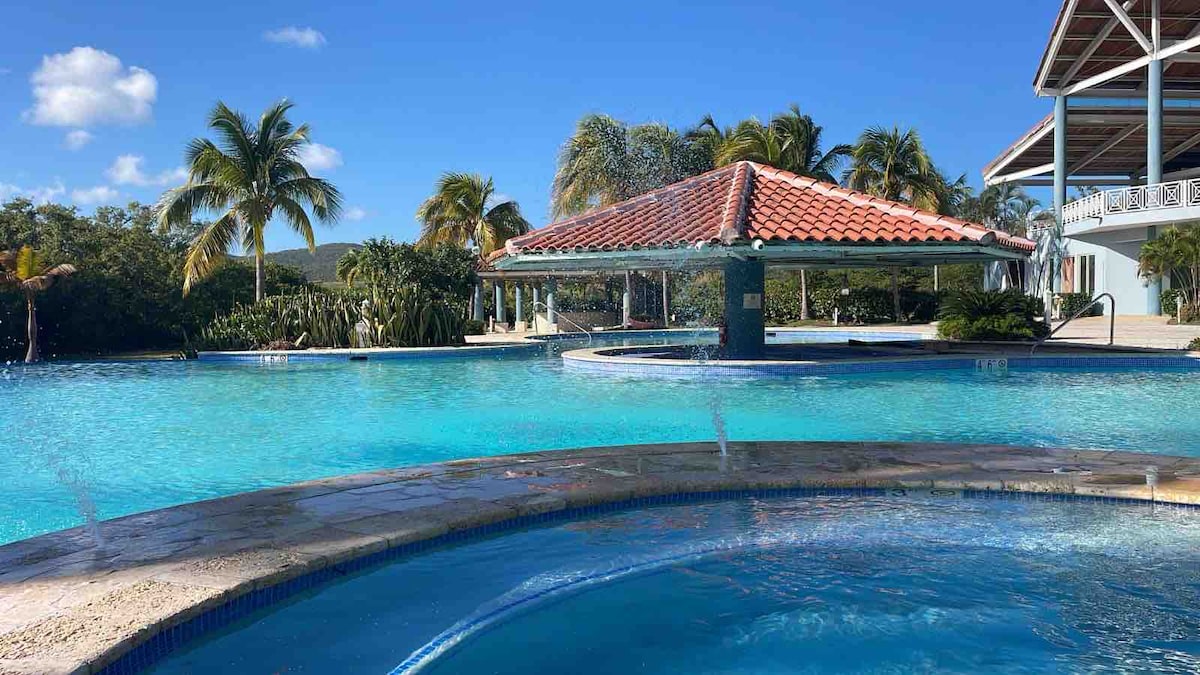 Relax and refresh at this unique and tranquil island getaway. Set in the tropical hillside of Mount Resaca, Casita Agua at Campo Alto is the perfect escape while visiting our beautiful island! Spend your days adventuring and your evenings relaxing in the pool. Our casita provides the perfect space for single travelers or couples looking to get away from it all! This studio unit features a dedicated plunge pool, queen bed, kitchenette and custom bath. Casita Agua has a backup water cistern.