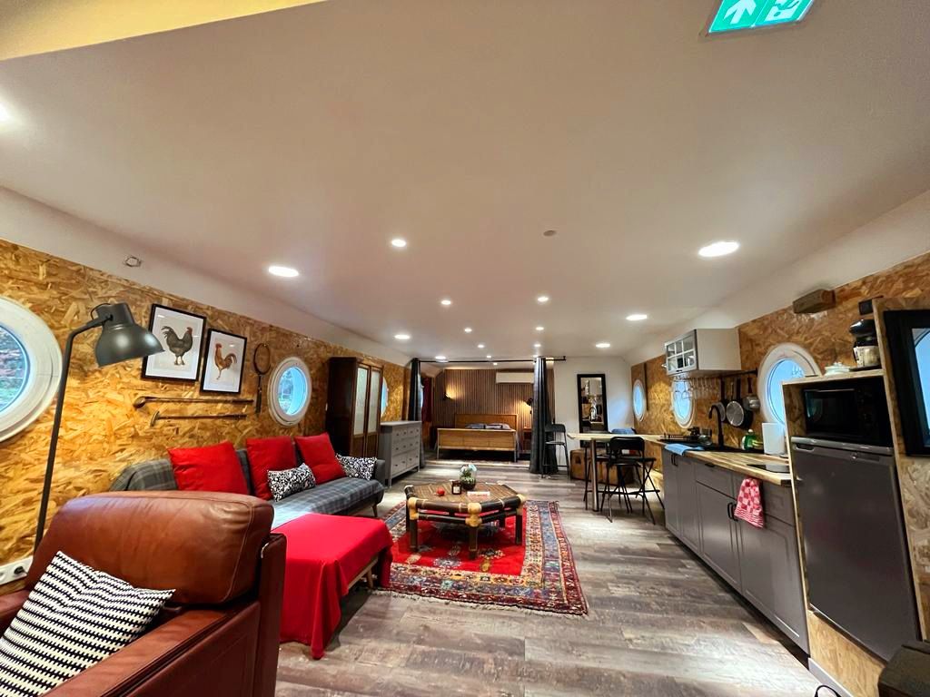 Uma noite sobre a água, entre Giverny e La Roche Guyon... Situado no Sena, o Nauti Cottage está ancorado no Port de Plaisance da bela vila de Bennecourt... Um estúdio de 20m², um grande terraço coberto de 18m² com vista panorâmica do rio, lhe darão a sensação de estar em uma luxuosa cabine de barco. Uma parada romântica, uma escala para ir a Giverny (12 minutos de carro, 6 km), a La Roche Guyon (também 12 minutos, 7 km), visitar o vale do Sena ou o parque natural de Vexin