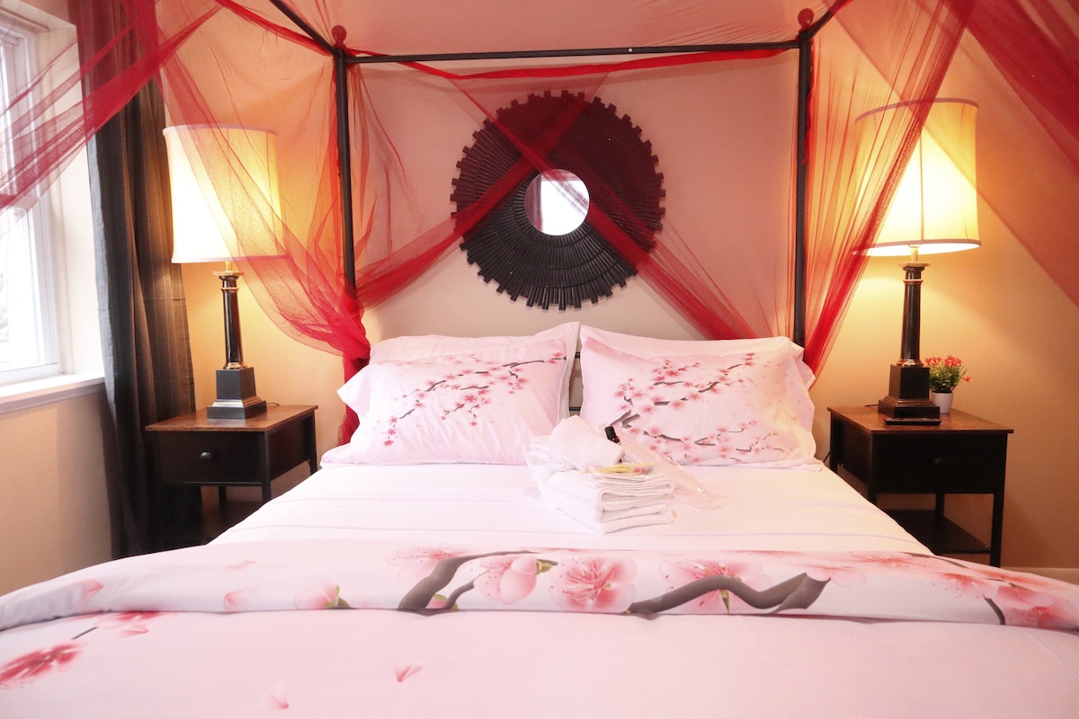 Apresentamos a nossa nova suite privada de 1 quarto/1 casa de banho, impecavelmente limpa e deliciosamente moderna! Projetado com estilo e conforto em mente, este espaço convidativo promete uma estadia inesquecível. O seu retiro exclusivo dispõe de uma cozinha totalmente equipada, uma casa de banho luxuosa e televisões inteligentes espaçosas de 55'e 50' para todas as suas necessidades de streaming. Desfrute de Wi-Fi de alta velocidade gratuito, ar condicionado com A/C e aquecimento e acesso às nossas instalações de lavandaria para hóspedes, tudo concebido para melhorar a sua experiência.