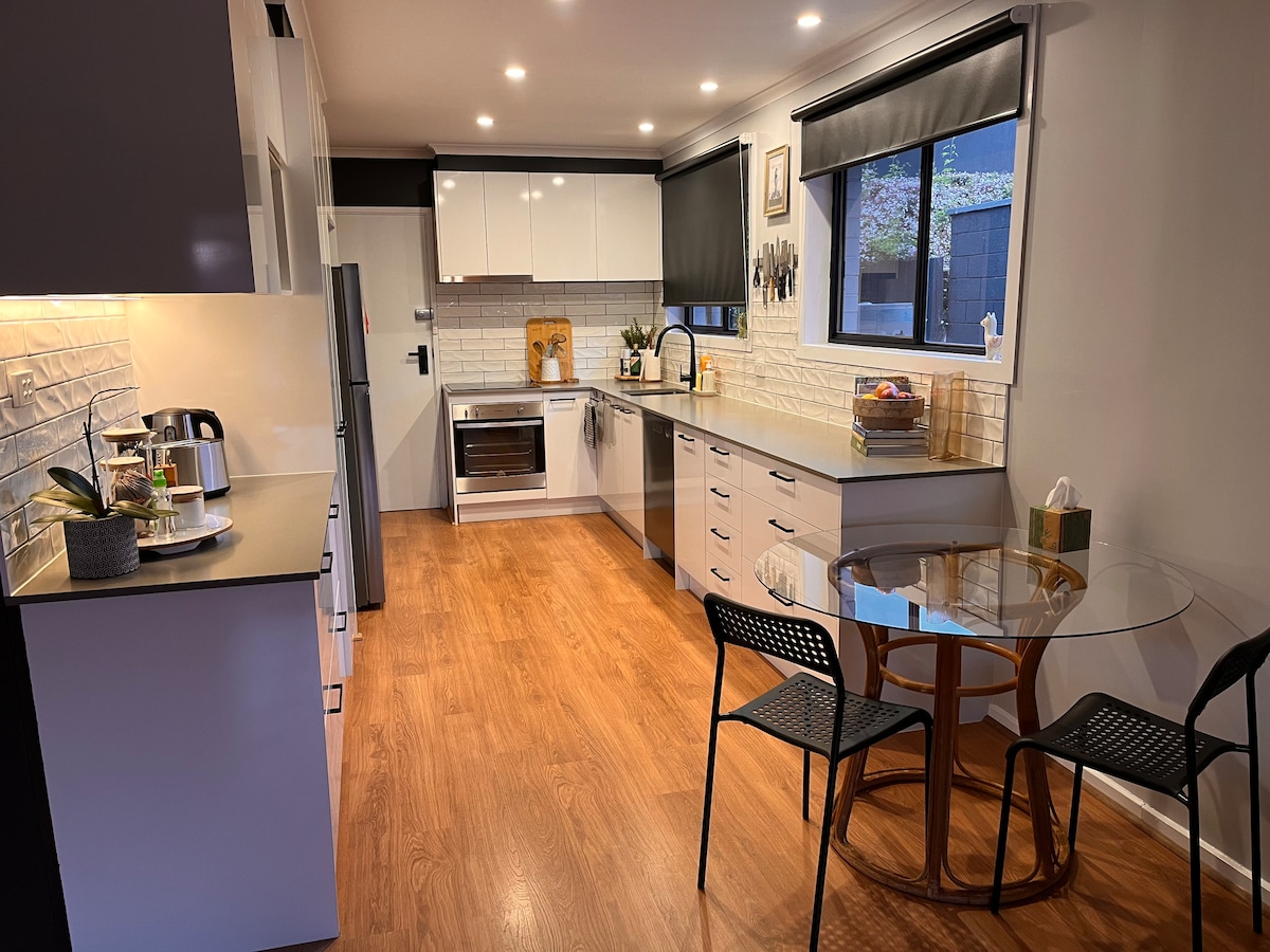 Unidade privada, grande e totalmente autónoma, recentemente renovada, num bairro familiar tranquilo de Mt Eliza. Embora a unidade da casa de hóspedes seja privada e tenha entrada própria, fica por baixo da casa principal. Mergulhe no estilo de vida descontraído da costa e desfrute do luxo de estar a apenas 20+ minutos de praias, adegas e fontes termais de classe mundial. Cozinha totalmente equipada, lavandaria, espaço de trabalho dedicado, 2 televisões inteligentes e camas confortáveis.