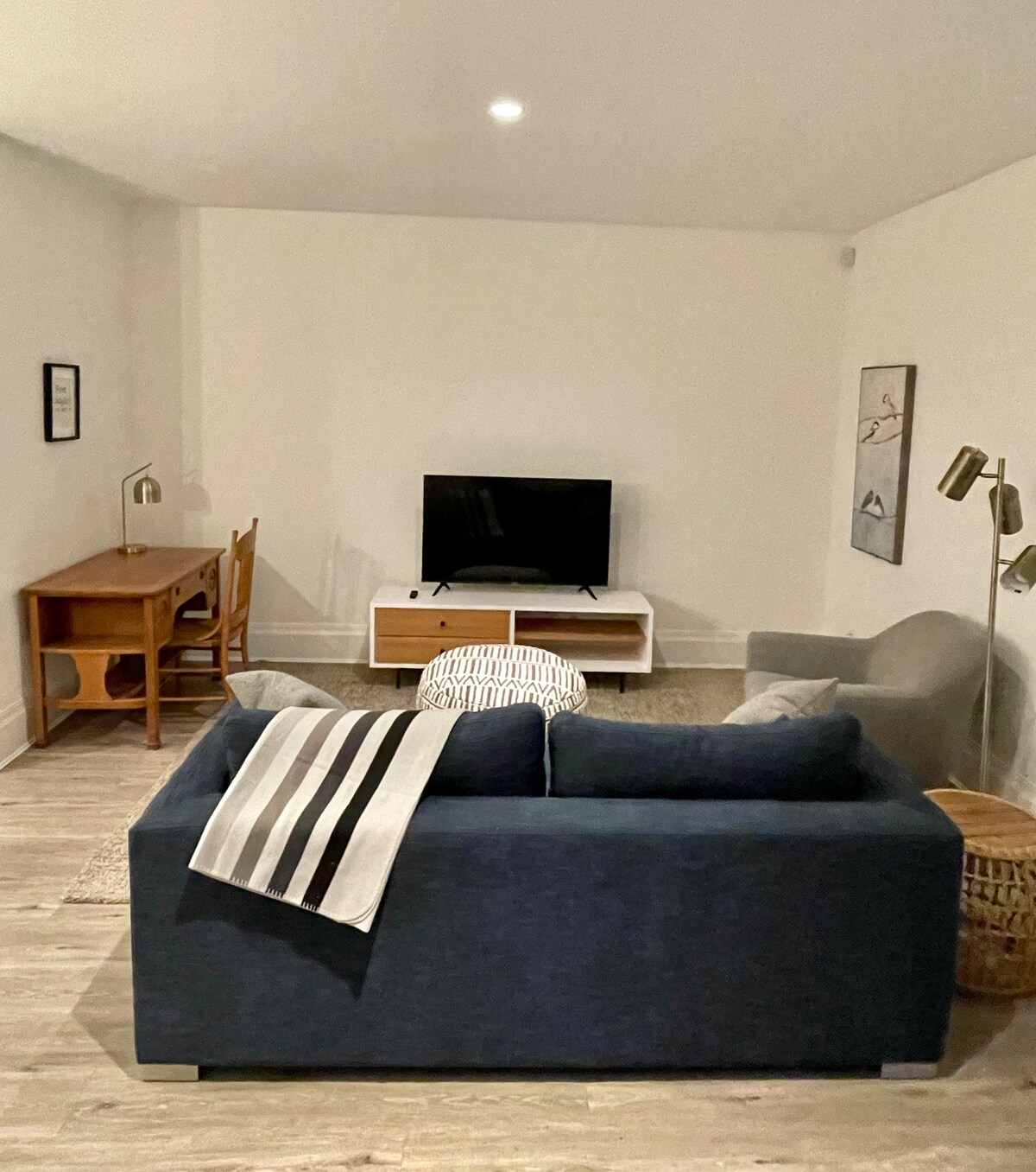Suíte de 2 quartos no andar inferior, a 5 quarteirões da praia