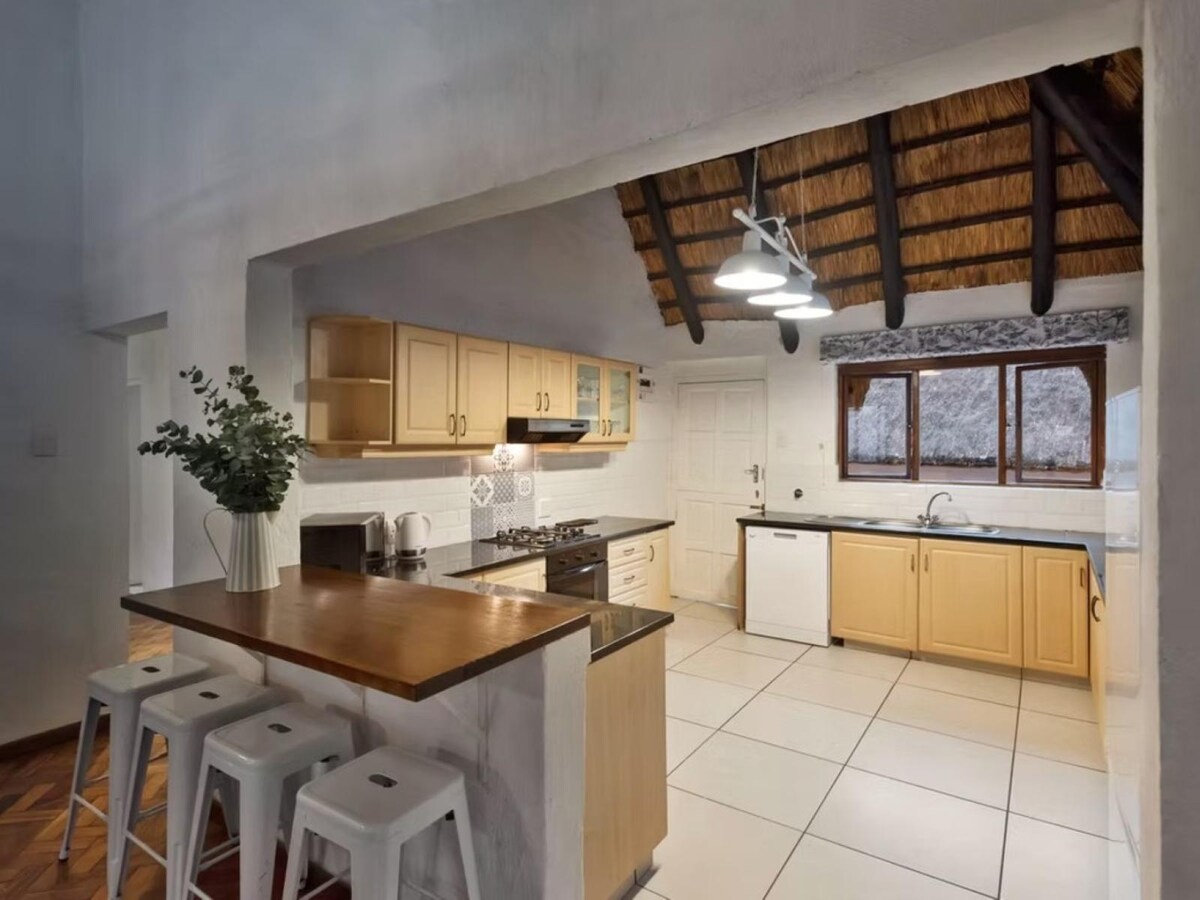 Chalé totalmente auto-suficiente de 2 quartos e 6 camas Consiste em 2 quartos, cada um com uma cama king size e casa de banho privativa Lounge com sofá-cama (adequado apenas para 2 crianças com menos de 12 anos) Televisão de ecrã plano no lounge com canais DStv selecionados Cozinha totalmente equipada. Área de entretenimento com churrasco, jacuzzi Por favor, note que a área de entretenimento não é líder com todos os quartos Servido diariamente Este quarto deslumbrante faz parte de uma unidade de moradia maior.