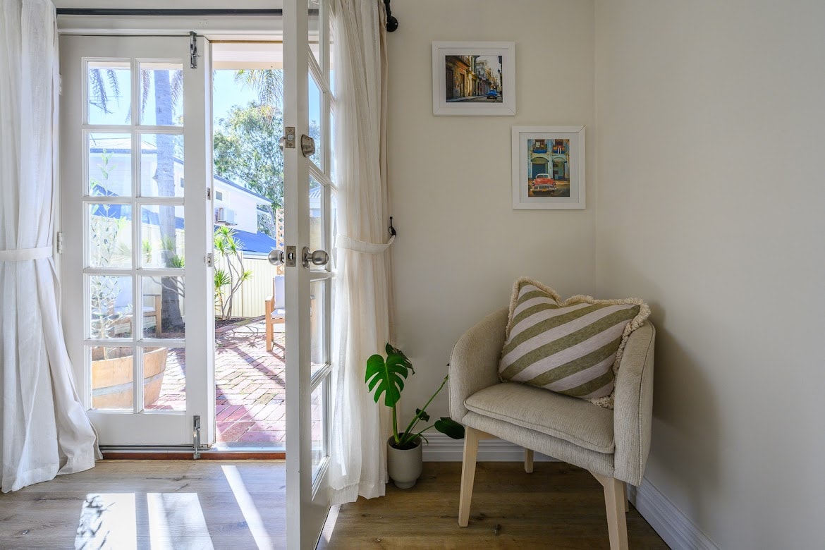Anneka and Brad's cottage is a classic Fremantle gem nestled within a walled limestone garden. Surrounded by mature shady trees, this beautiful and light standalone cottage is the perfect getaway in the heart of South Fremantle. All of the materials from this cottage have been carefully sourced from the local area. With a mix of limestone, baltic pine and jarrah floorboards, this unique stay is the perfect place to rest after a day of exploring the local cafes, restaurants and beaches nearby.