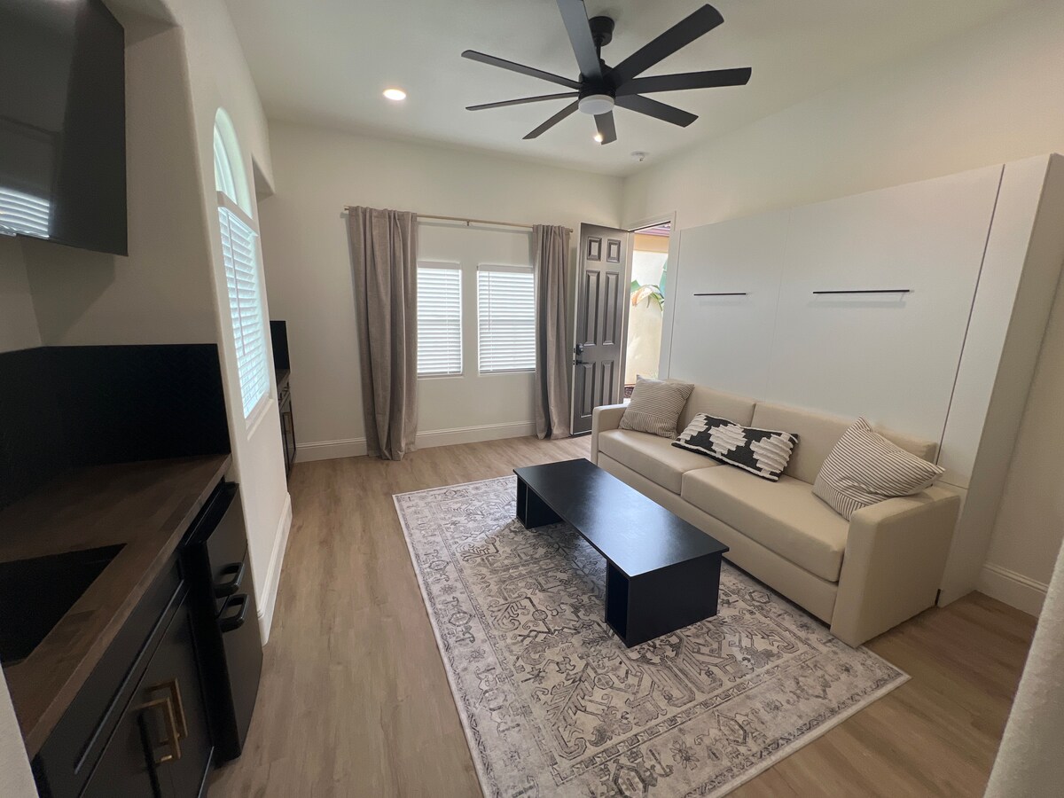 Você está reservando para 1 QUARTO SOMENTE (APENAS 1-2 hóspedes) Esta é uma nova casa de estilo moderno com 1 quarto, uma entrada privativa, 1 banheiro/chuveiro e uma pequena cozinha. Nosso bairro é muito seguro e tranquilo. O aluguel é uma casa dentro de uma casa, mas bloqueada por uma porta trancada para sua privacidade. A cozinha pequena tem: -Micro-ondas - Frigobar - Cafeteira - Torradeira -Chaleira NÃO inclui: máquina de lavar/secar ou fogão/forno Opção de 2 quartos disponível para esta mesma casa de hóspedes, anúncio diferente sob meu nome