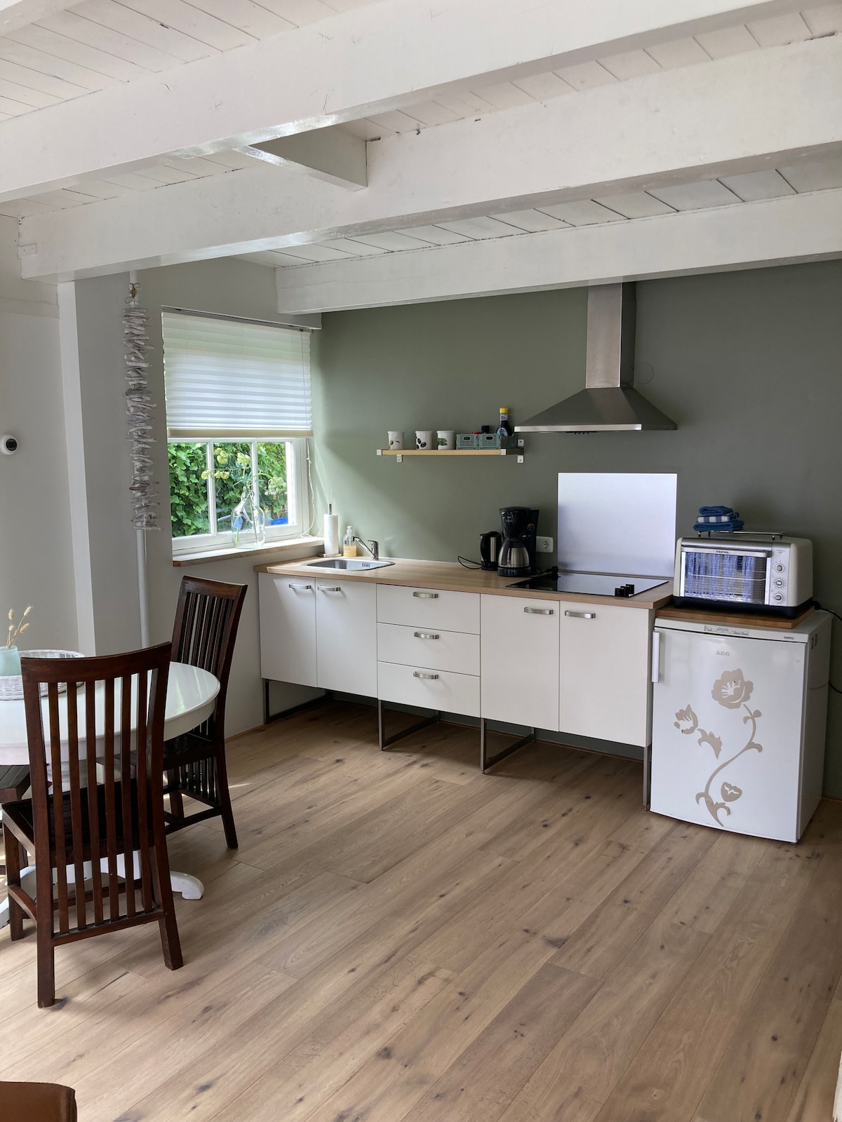 No centro histórico de Hindeloopen, há uma casa de pescadores (34 m²) que foi convertida em um estúdio confortável e equipado com muitas comodidades. O estúdio tem uma cama king size, uma cozinha compacta, um banheiro espaçoso e muito espaço de armazenamento. O estacionamento pode ser feito na própria casa, desde que você tenha um carro pequeno. Caso contrário, recomendamos o estacionamento gratuito e espaçoso no porto. Você pode guardar suas bicicletas no jardim que pertence à pousada.