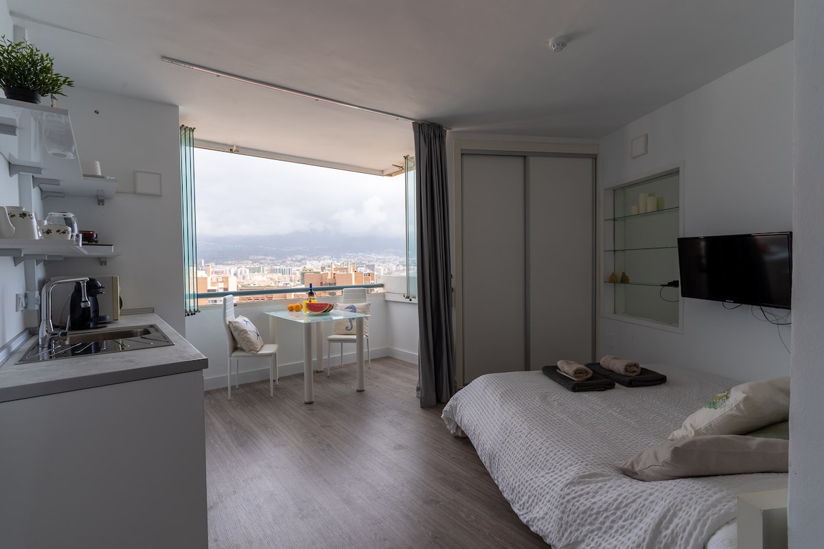 Vista incrível do 17º andar para o porto e praia. Primeira linha de praia, edifício El Puerto. Ar condicionado. Wi-Fi. Aquecimento. TV. Cozinha. Caminhando para lojas e restaurantes, praia, ônibus e trem. Campos de golfe. Temos mais 2 apartamentos para 2 pessoas no andar de baixo. Você pode vir 6 pessoas em casas separadas, mas uma em cima da outra e ao lado. Dolphin Suite https://abnb.me/BQ9tuGjyxxb Suíte Posidonia https://abnb.me/WyeDTY5r1Bb